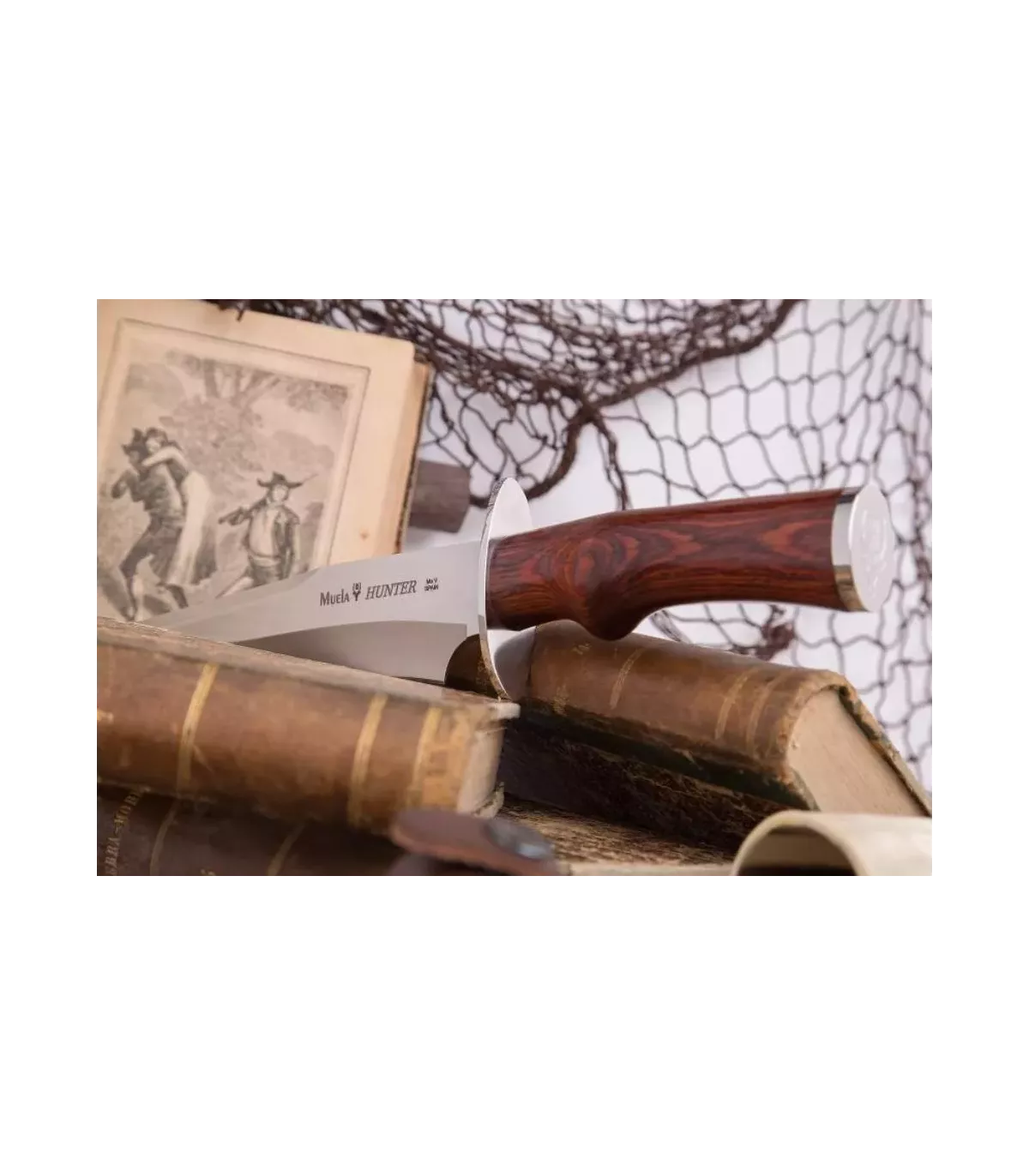 Jagt- og sportskniven HUNTER-17R er et robust og pålideligt valg til dine udendørs eventyr. Fremstillet i Spanien af Muela, har den et blad i molybdæn-vanadium-stål på 170 mm i længden og et ergonomisk håndtag formet i rosewood-træ for et sikkert og komfortabelt greb.