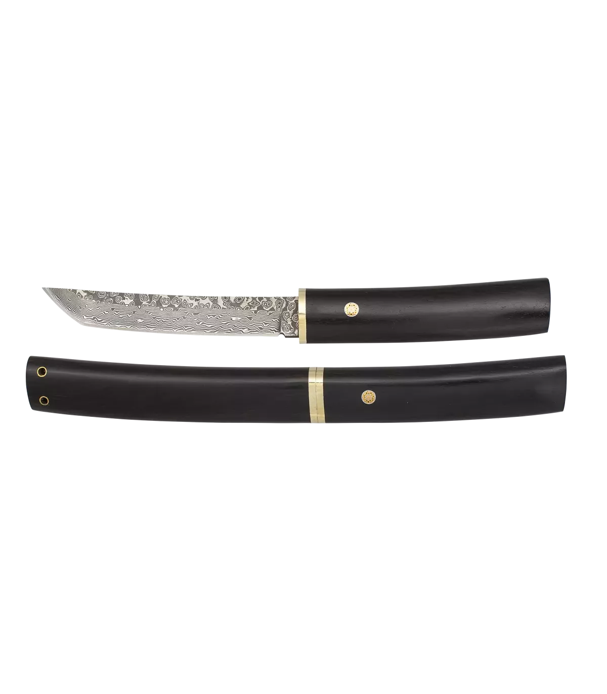 - Bladet i Damaskusstål med 73 lag er et mesterværk af smedning. Hvert lag bidrager til et indviklet og unikt mønster, hvilket skaber et funktionelt kunstværk, der skiller sig ud i køkkenet.