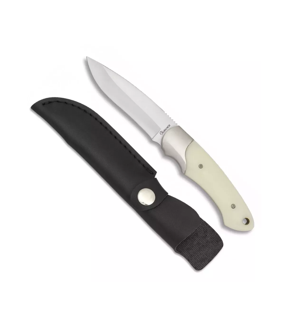 Monte-kniven leveres med et syntetisk læderhylster for at beskytte den under transport og opbevaring. Med en samlet længde på 20,5 cm er denne kniv tilstrækkelig kompakt til at medbringes i enhver rygsæk eller eventyrudstyr.