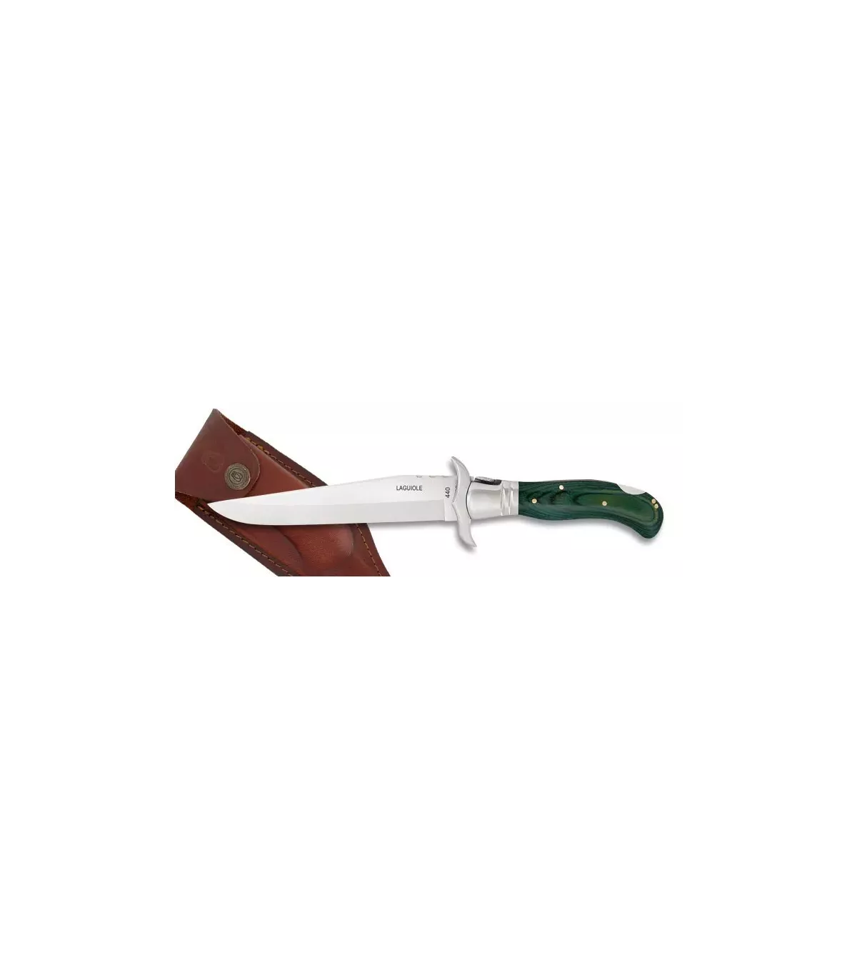 Bladet af rustfrit stål 440 på den foldbare Laguiole-kniv er robust og holdbart, hvilket sikrer, at denne kniv vil følge dig på mange eventyr. Det grønne micarta-håndtag er elegant og slidstærkt og giver et behageligt og sikkert greb, selv under fugtige eller glatte forhold.