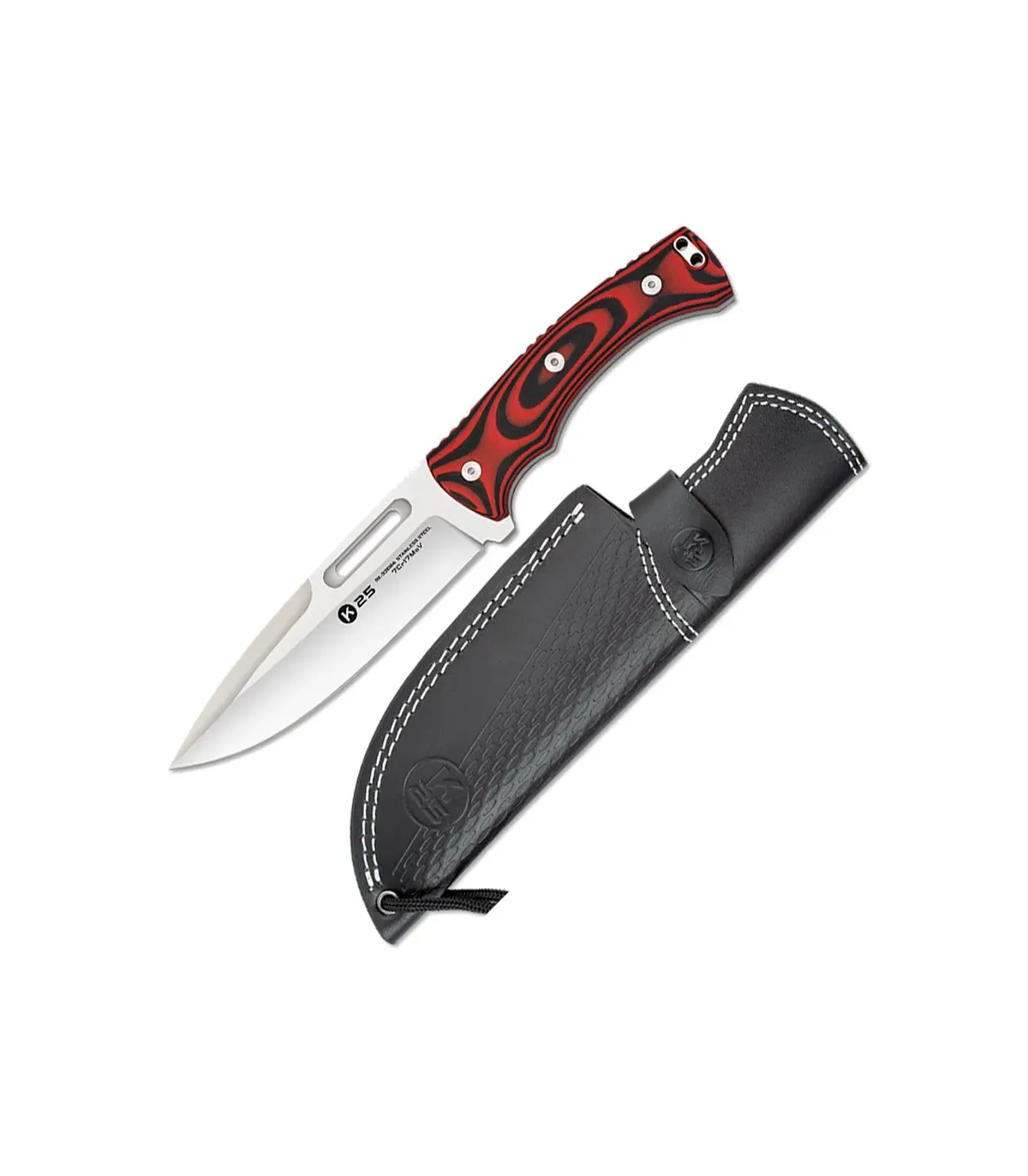 Opdag fremragende design og ydeevne med jagtkniven K25 i wengé-træ, et uundværligt værktøj for de mest krævende jægere.