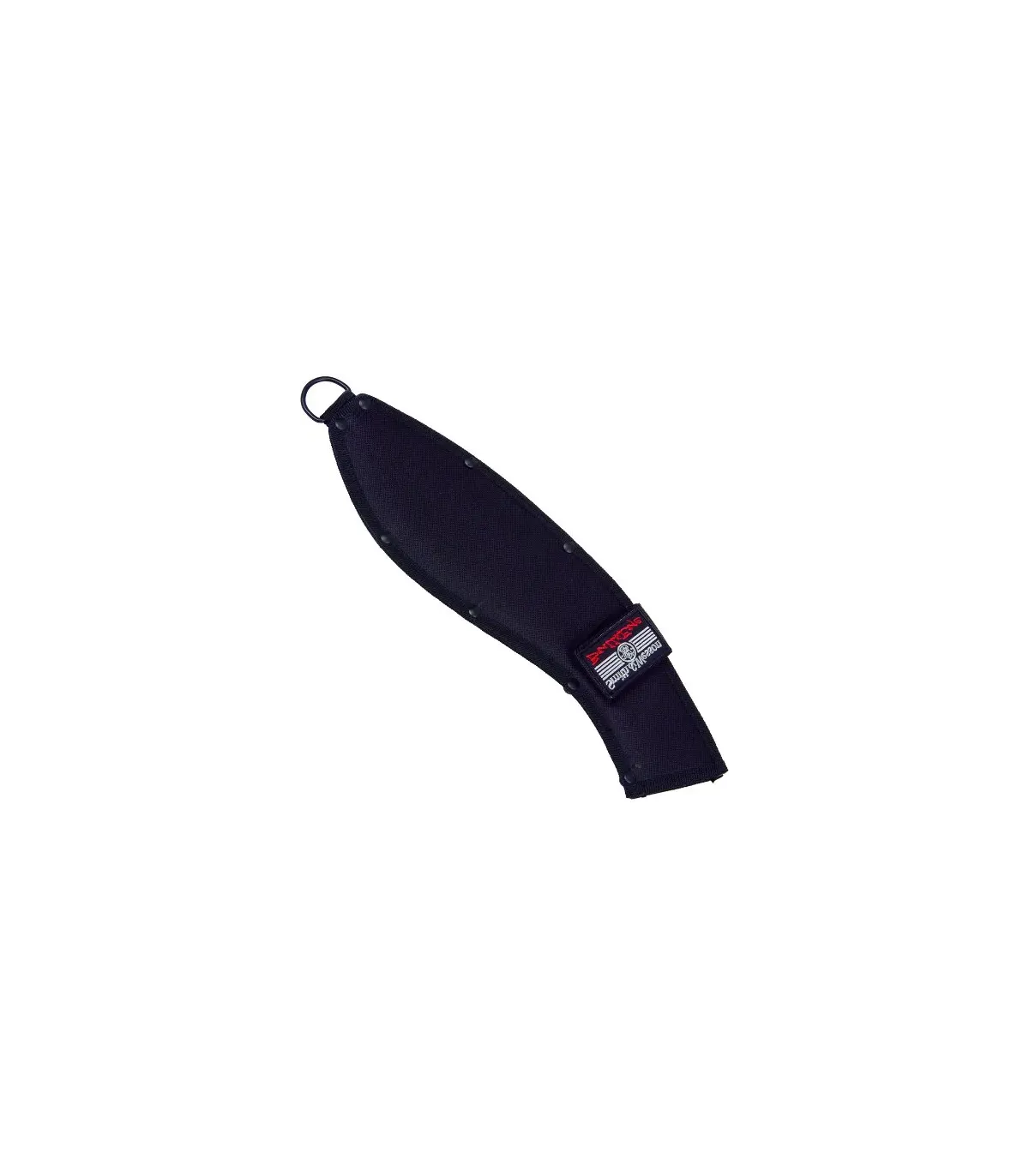 Håndtaget, indpakket i et gummimateriale med dybe riller, omfavner hånden og forhindrer glidning selv under fugtige forhold. Dette ergonomiske greb gør krævende opgaver til kontrollerede manøvrer, og hullet i bunden giver dig mulighed for at sikre kniven med en snor for ekstra tryghed, når du arbejder i højden eller krydser vanskelige terræn.
