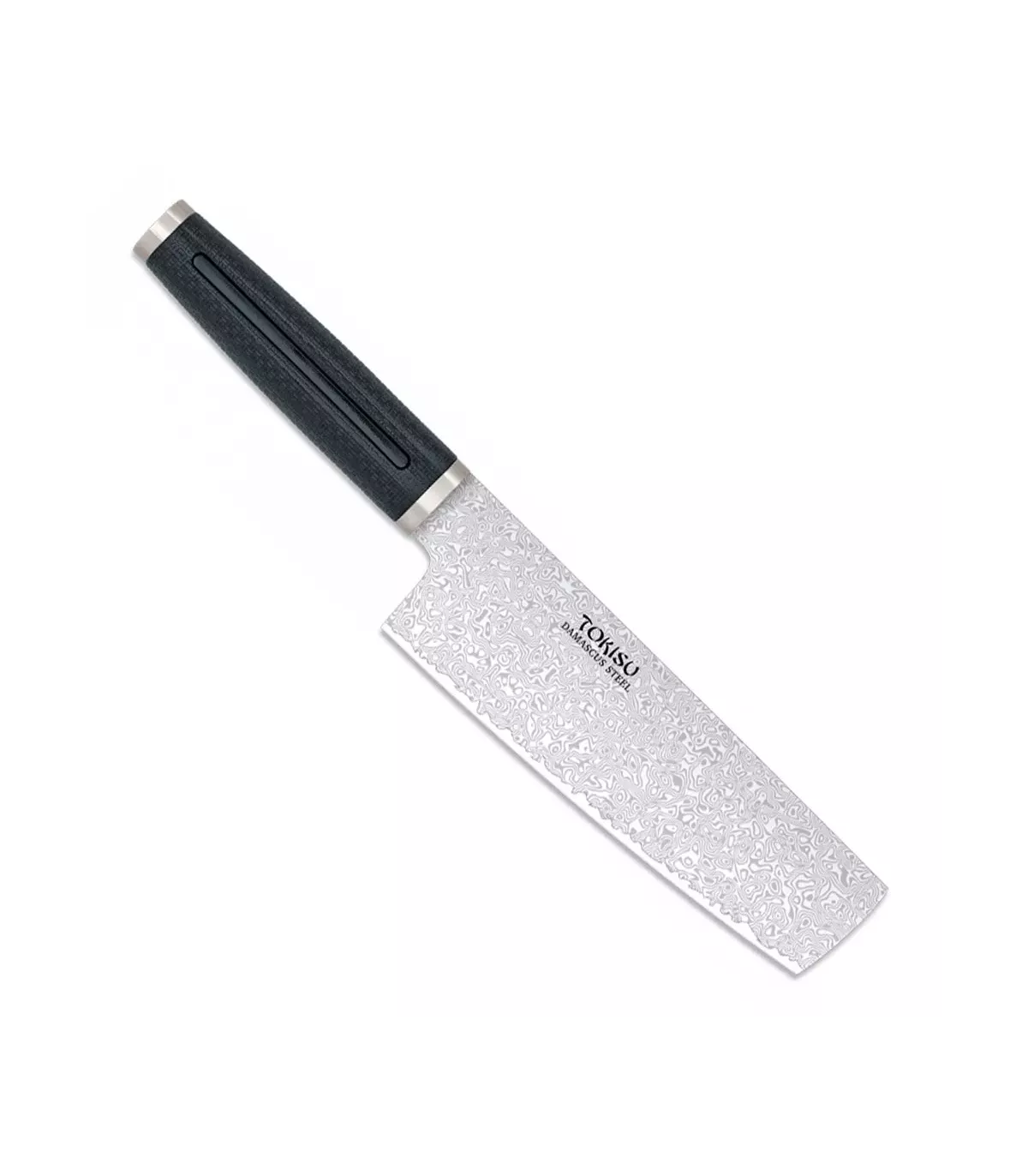 Gør dig klar til at tage dine kulinariske færdigheder til næste niveau med Tokisu's NAKIRI-køkkenkniv! Med et damaskusstålblad på 67 lag er denne kniv mere end blot et køkkenredskab – den er et mesterværk af præcision! Dens skårne blad og en tykkelse på 2,40 mm gør det nemt og hurtigt at skære grøntsager og rodfrugter.