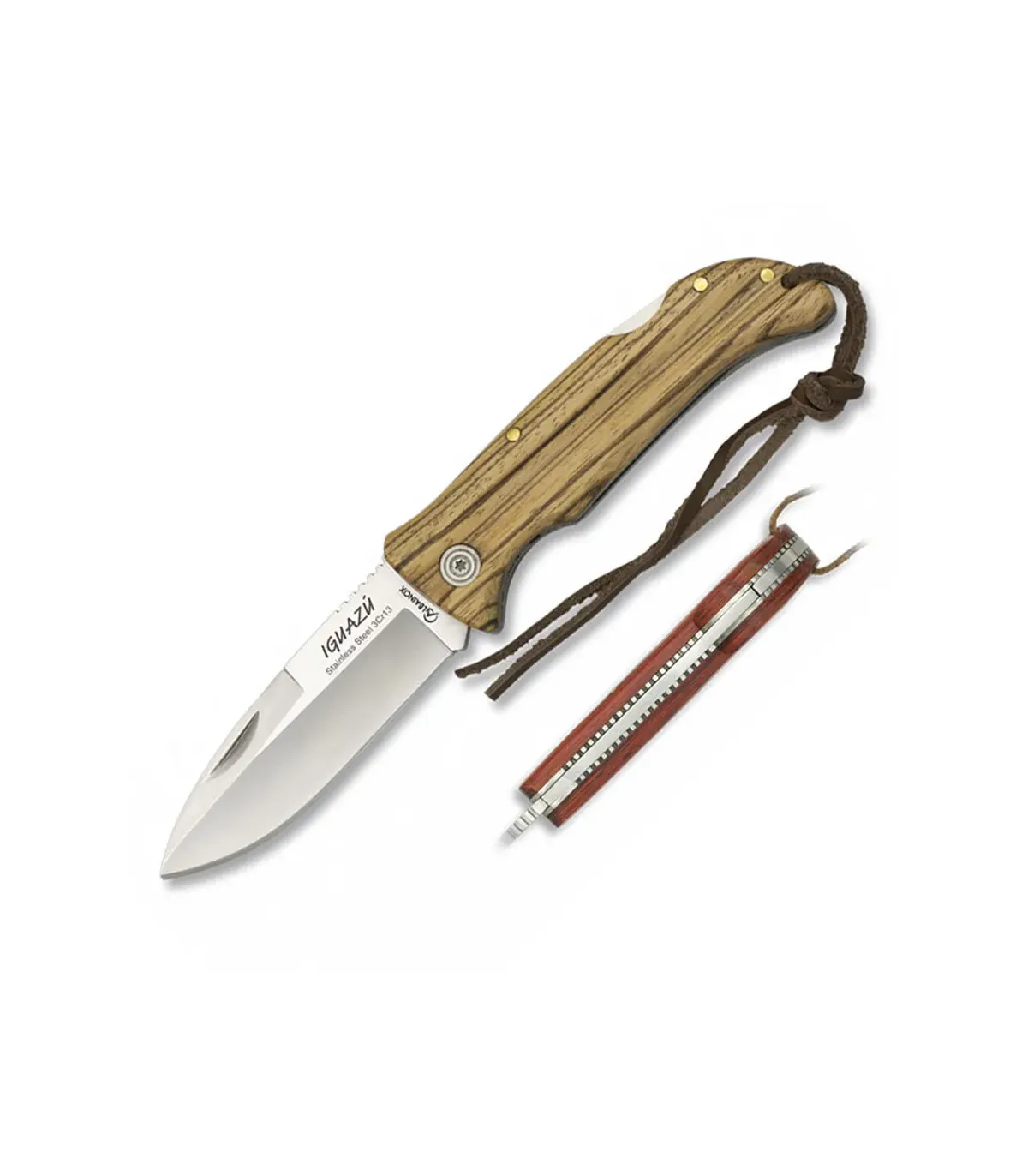 Albainox Iguazu Jagtkniv skiller sig ud med sin kvalitet og ydeevne. Dets smedede rustfrie stålblad, kombineret med en mat finish, giver fremragende modstand mod korrosion og et elegant udseende. Derudover sikrer det pålidelige lukningssystem en sikker og bekymringsfri brug.