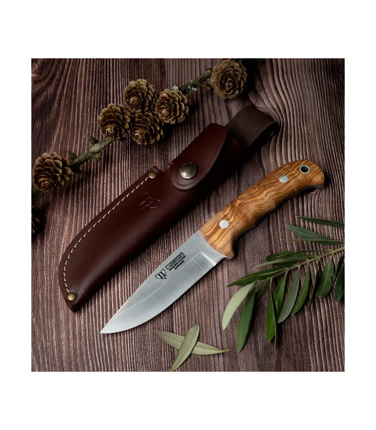Dybt fordyb dig i jagtens passion med en høj kvalitet jagtkniv. Fremstillet helt i Albacete, er denne kniv en sand hyldest til spansk håndværk og arv. Dets oliventræshåndtag fremhæver ikke kun dets naturlige skønhed, men giver også et behageligt og sikkert greb under dine ekspeditioner.