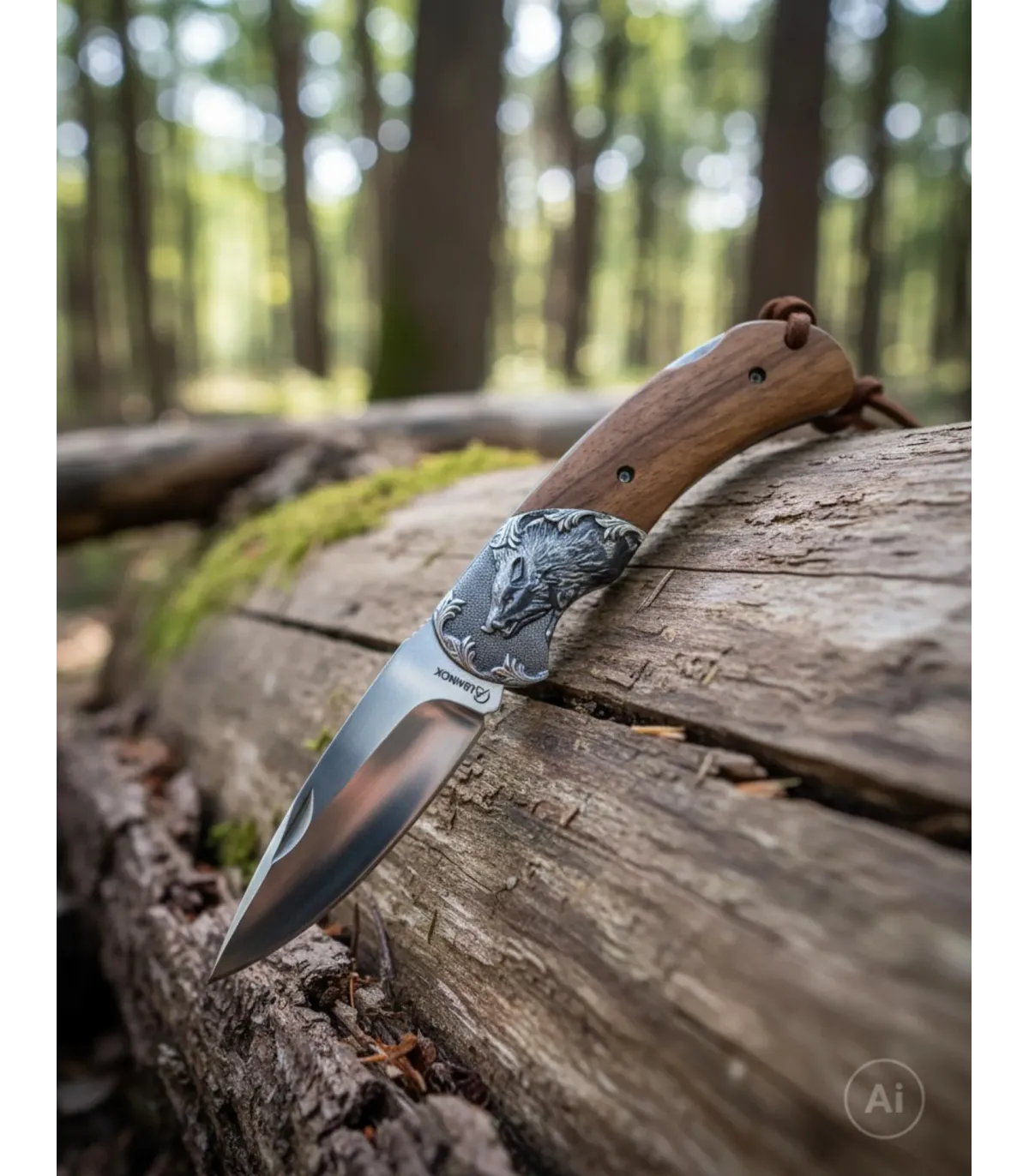Det naturlige træhåndtag giver et behageligt, fast greb og har et klassisk præg, der afspejler håndværket. Den stål-virola, dekoreret med indgraveringer, der forestiller et dyr med stor symbolik, tilføjer et unikt og sofistikeret udseende, hvilket gør hvert stykke til et miniaturekunstværk.
