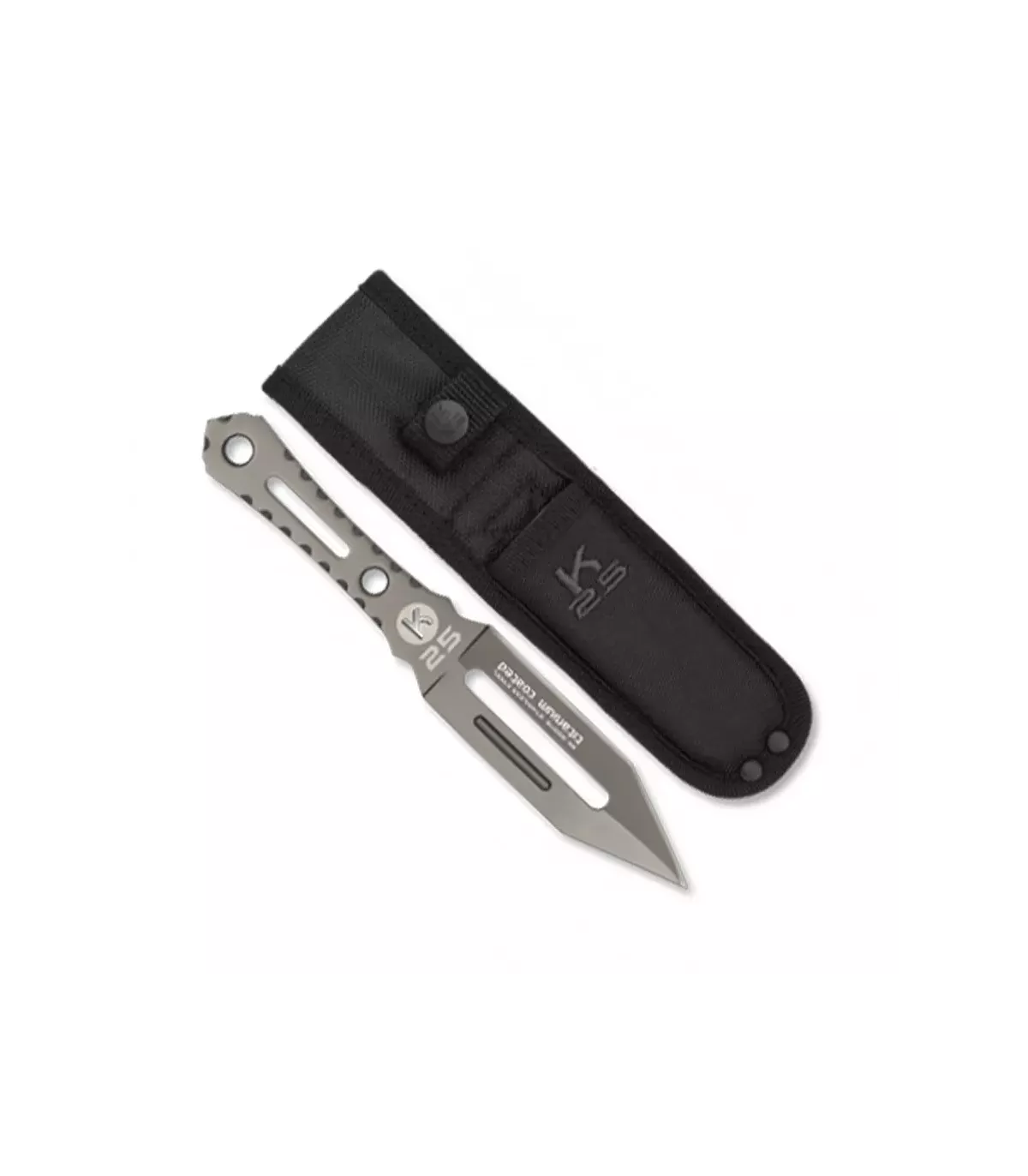 Forbered dig på at kaste denne kniv som en ægte professionel! Jeg præsenterer K25 kastekniv, som har et rustfrit stålblad og en titaniumbelægning, der giver den et imponerende udseende. Med en længde på 19,3 cm og en bladtykkelse på 4,5 mm er denne kastekniv det perfekte supplement til dine kastfærdigheder.