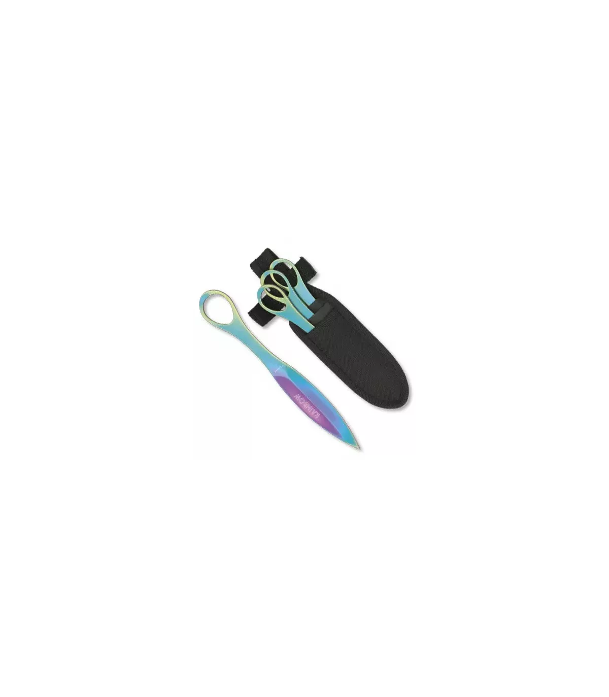Forbered dig på at udfordre tyngdekraften med sættet med 3 Rainbow kastestjerner! Disse knive er fremstillet af høj kvalitet rustfrit stål og har et iøjnefaldende og farverigt design, der ikke vil gå ubemærket hen.