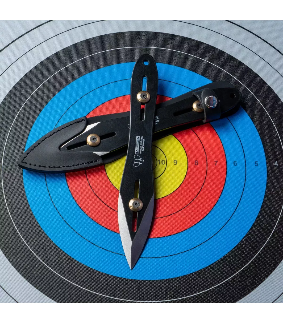 Det udhulede blad med en kastespids på 3,8 mm tykkelse og 4 cm bladbredde giver dig enestående præcision og kontrol ved hver kast. Derudover giver dens dobbelte vægte dig mulighed for at balancere kastet efter behov, og det medfølgende sorte læderetui sikrer sikker transport og beskyttelse.