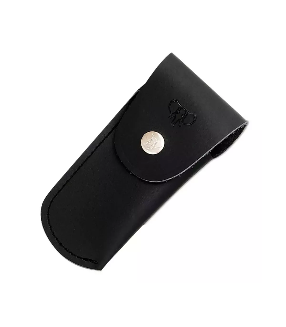 - Elegant Sort Læder: Dette etui er fremstillet af førsteklasses sort læder. Materialet er ikke kun holdbart, men tilføjer også et strejf af elegance til dit udstyr. Forestil dig den elegance, det vil tilføre din kniv.