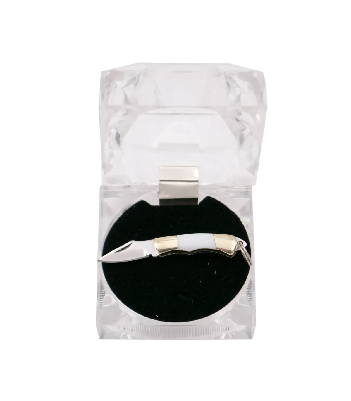 Med en vægt på kun 3 gram og en samlet længde på 4,35 cm er denne kniv ekstremt let og bærbar. Dens kompakte størrelse gør den til et fremragende valg til at have på nøgleringe, som skrivebordsdekoration eller som en del af et nødsæt.