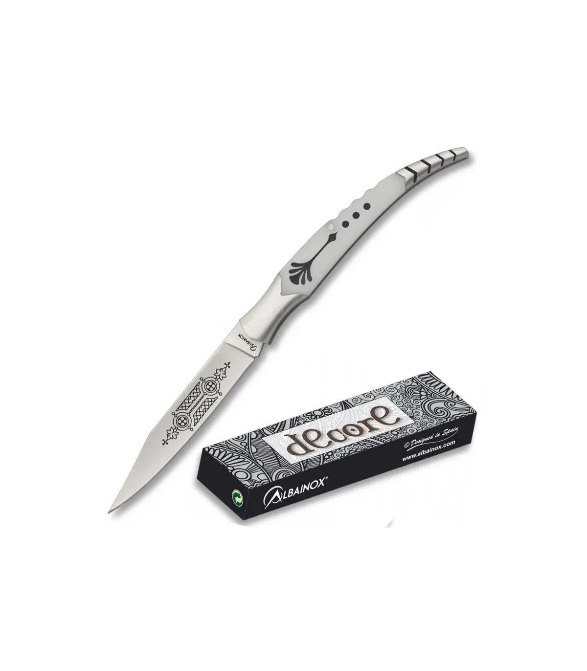Bring elegance og stil til et nyt niveau med Albainox-mærke kniven med dekoreret blad, designet i Spanien!
