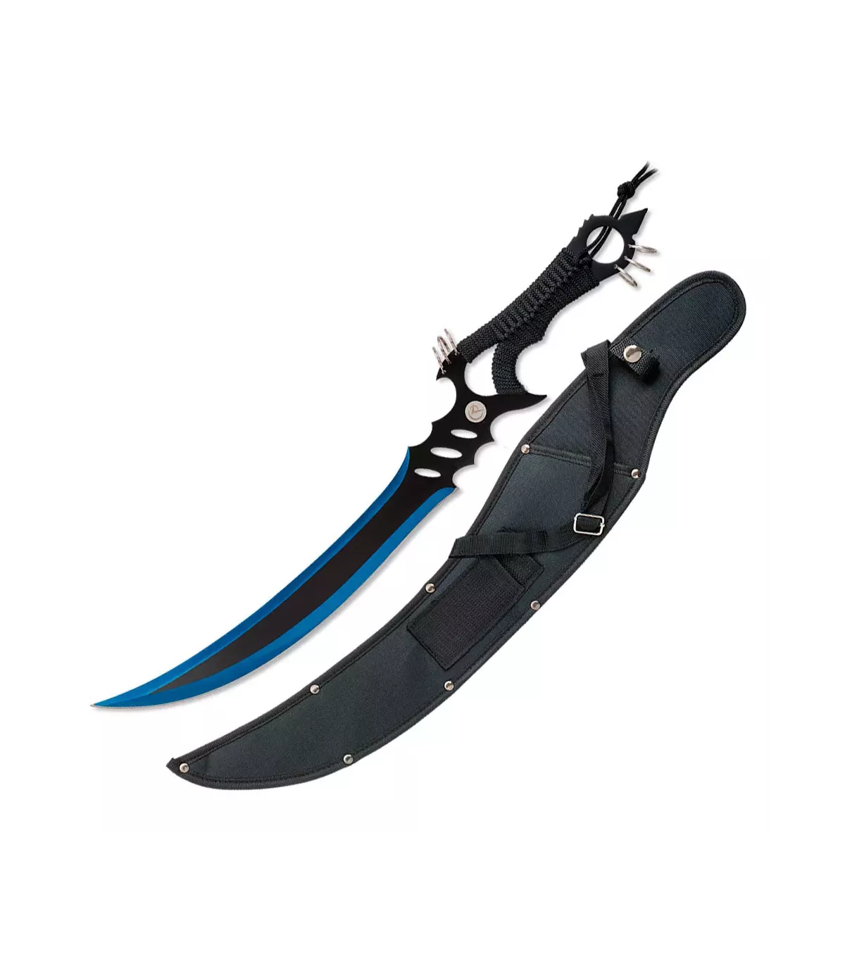 - Bladet af blandet rustfrit stål: Designet til at håndtere enhver udfordring, det blandede blad i sort og blå tilbyder ikke kun et imponerende udseende, men også enestående holdbarhed og styrke. Fra grundlæggende skæreopgaver til mere krævende udfordringer er dette machete din trofaste følgesvend i enhver situation.