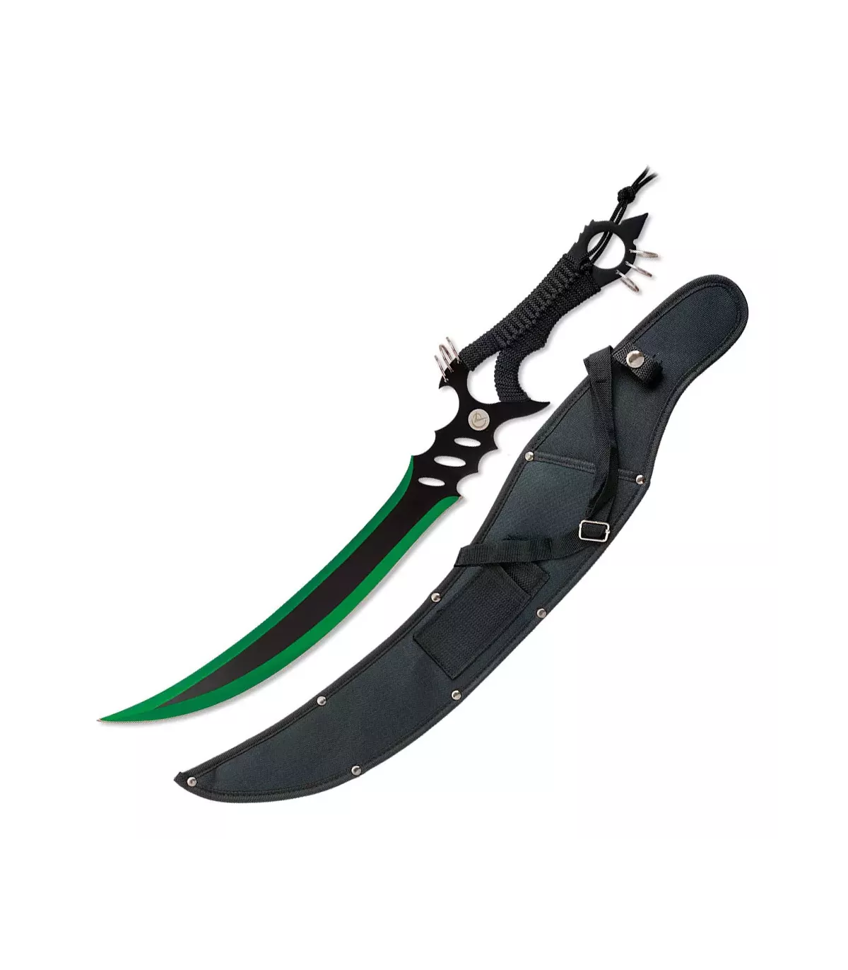 Med fantasymachete Albainox model Rings i grøn er du klar til at overvinde enhver udfordring, der måtte krydse din vej. Mestr naturen med stil og selvtillid!