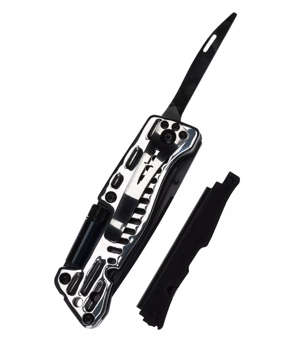 - Yderligere funktioner: Ud over klingen og lygten har Trekus en sav, fil, skruetrækker, chuck, flaskeåbner, kabelskærer og ildstift. Alt, hvad du behøver, er lige ved hånden i et kompakt værktøj!