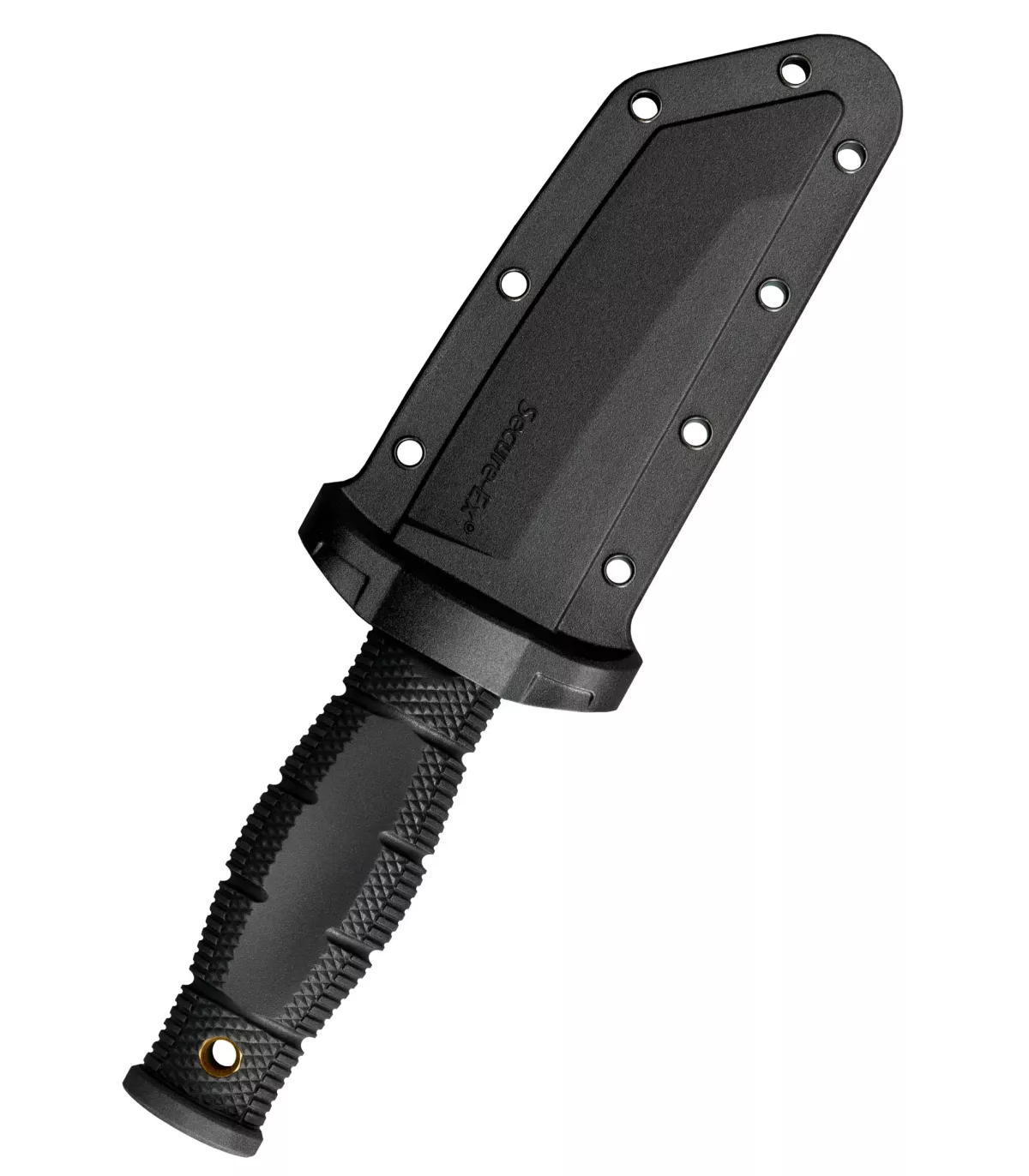- Secure-Ex-hylster: Inkluderer et holdbart Secure-Ex-hylster, der passer perfekt til kniven. Dette hylster muliggør sikker og bekvem transport og kan tilpasses med en perlekæde eller Cold Steel C-Clip efter dine præferencer.