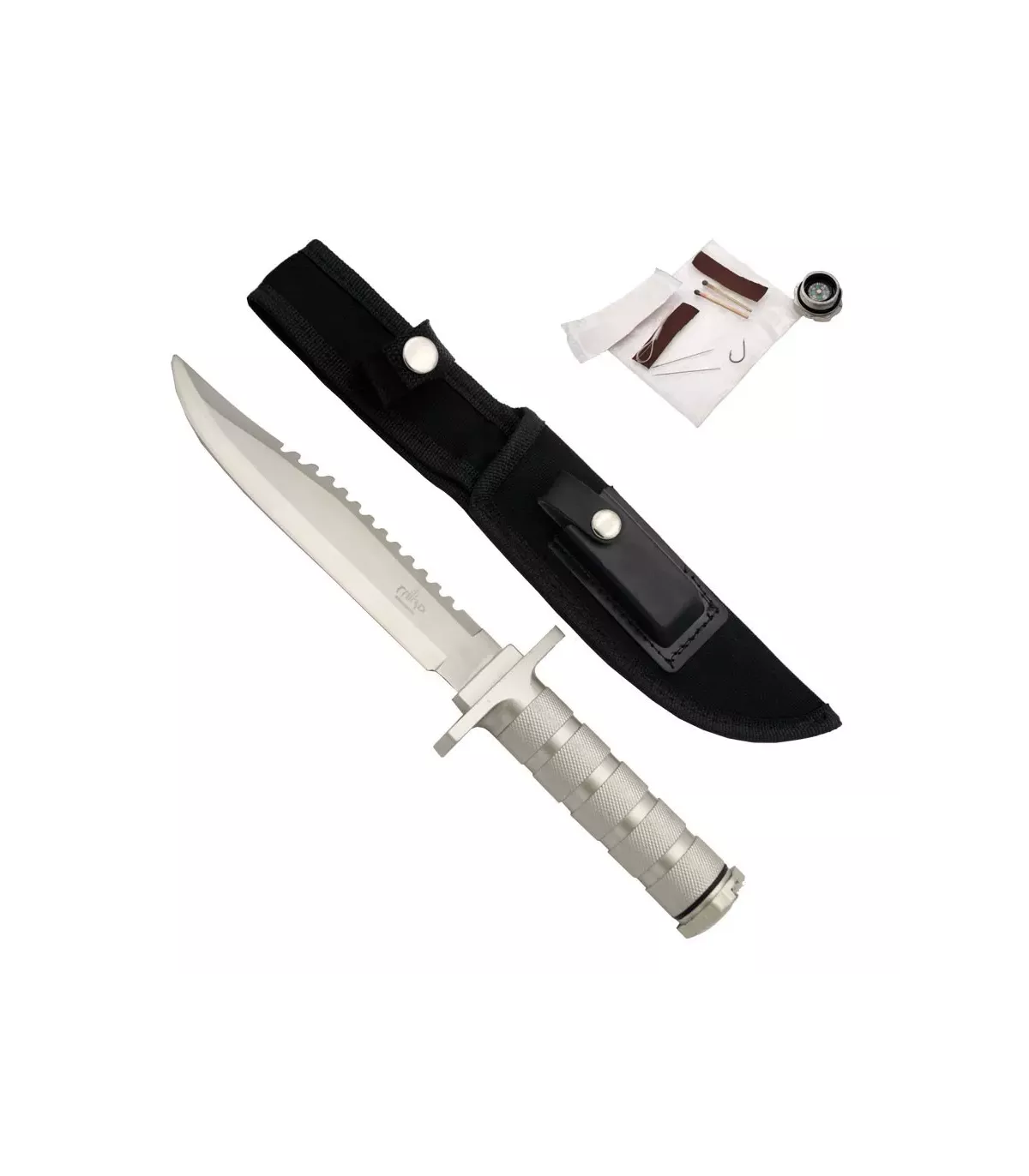 Derudover leveres denne overlevelseskniv med en slibesten, et overlevelseskit og en nylonhylster for at beskytte den under transport og opbevaring. Med en samlet længde på 30 cm og en vægt på 323 gram er denne kniv stor nok til større opgaver, men også til daglig brug.