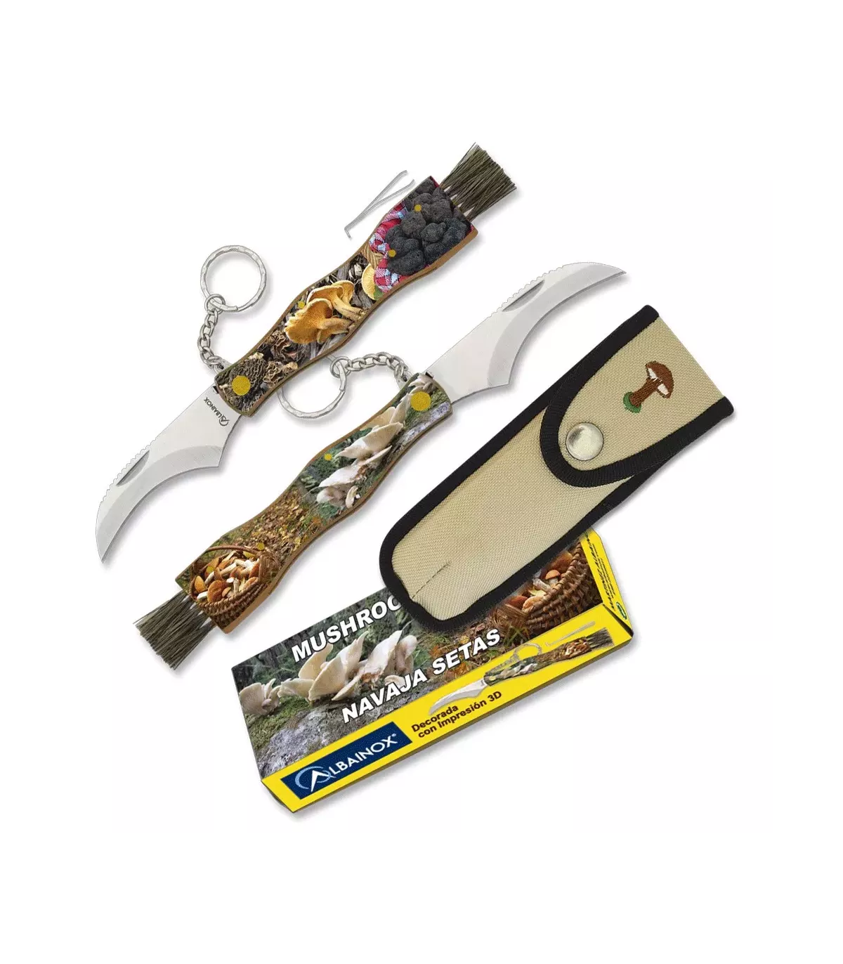 Opdag nøgleringen kniv til svampe med et strejf af unik stil. Denne kniv har et træhåndtag dekoreret med et 3D-fotoprint på begge sider, hvilket giver den et karakteristisk og tiltalende udseende. Fremstillet af kvalitetsmaterialer er denne kniv en ægte perle for svampejægere.
