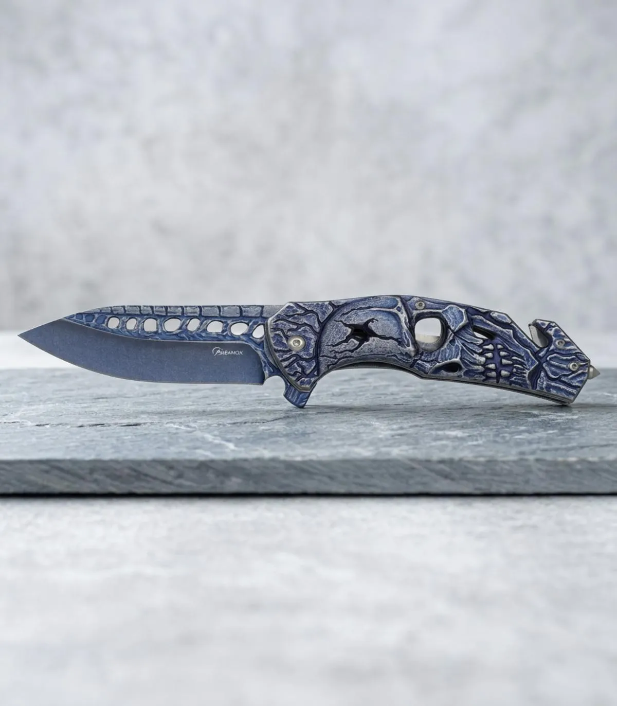 Albainox taktisk redningskniv med blå stentekstur