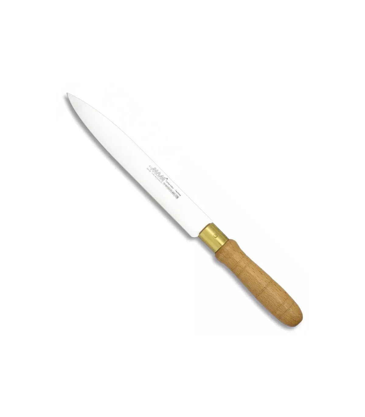 Træhåndtaget på MAM-kniven giver et behageligt og sikkert greb under brug. Det ergonomiske design giver dig fuld kontrol over kniven, hvilket letter dine bevægelser i køkkenet og sikrer præcise snit. Derudover tilføjer messingringen et strejf af elegance og holdbarhed til det overordnede design af kniven.