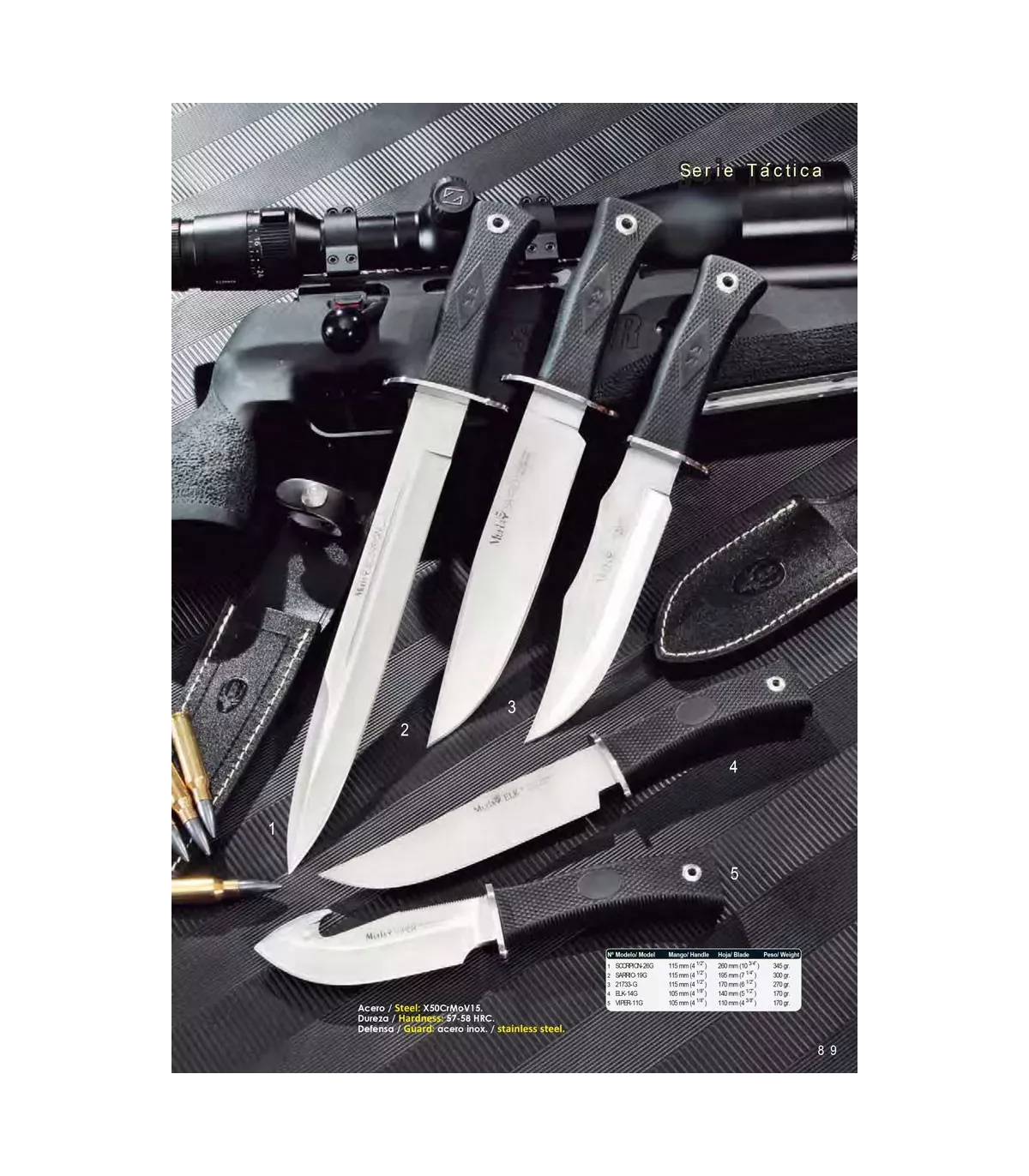 Med en hårdhed på 57-58 HRC på Rockwell-skalaen er denne Muela-flåkniv ideel til effektivt og sikkert at skære gennem dyrehud og kød. Med en vægt på 345 gram er denne kniv nem at håndtere og behagelig at bruge.