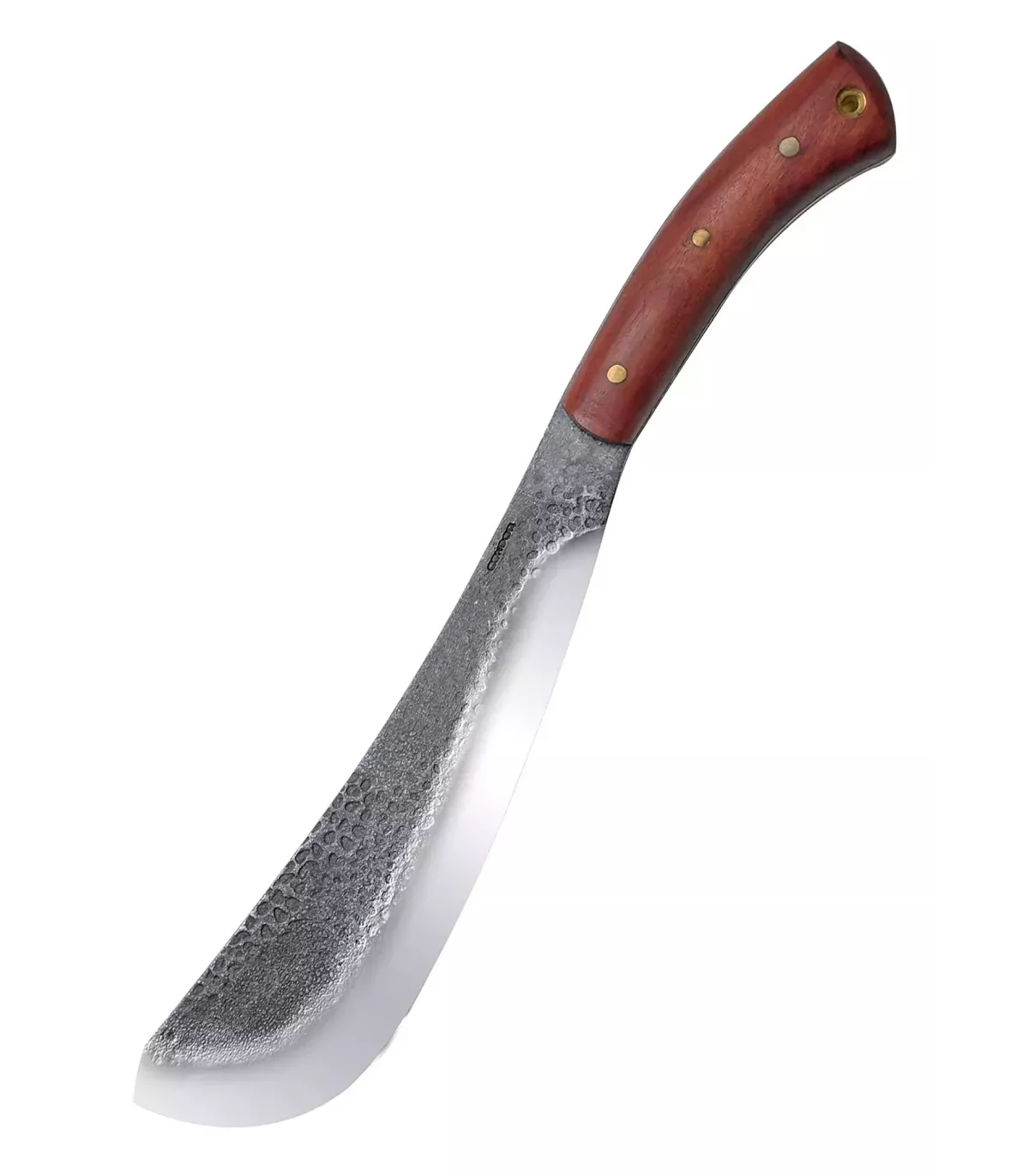 - Vielseitigkeit in der Anwendung: Vom Schneiden von Schilf bis zum Freimachen eines Weges im Gestrüpp ist der Golok so gestaltet, dass er eine Vielzahl von Aufgaben im Feld bewältigen kann. Sein gebogener Griff fördert eine effizientere Schneidbewegung, während die robuste Spitze die Handhabung von Gegenständen und das Graben erleichtert.