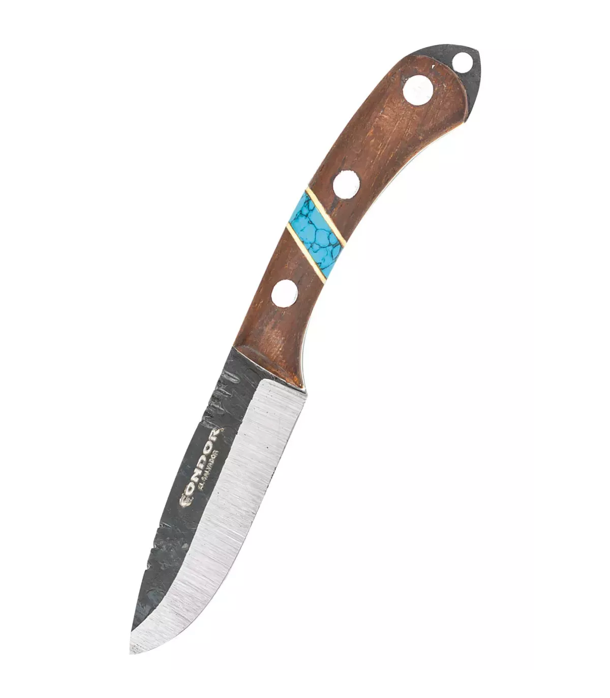 Mit einer Gesamtlänge von etwa 12,7 cm und einer Klingenlänge von etwa 5,9 cm ist das Blue River Neck Knife einfach überall mitnehmbar. Der Nussbaumgriff mit türkisfarbenen Steinelementen verleiht dem Messer einen einzigartigen indianischen Charakter.
