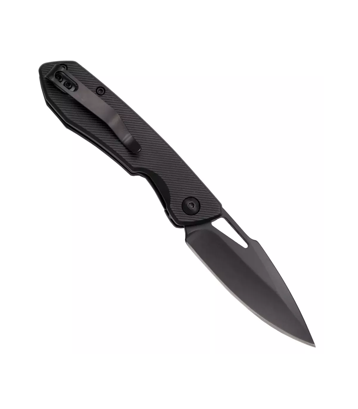 Der Griff, gefertigt aus schwarzem Aluminium mit spezieller Textur, sorgt für einen sicheren und bequemen Griff und ermöglicht eine präzise Handhabung in jeder Situation. Sein schlichtes Design wird perfekt durch die 7 cm lange Klinge ergänzt, die in einem eleganten schwarzen Ton gehalten ist. Diese Klinge bietet nicht nur einen sauberen und effizienten Schnitt, sondern weist auch eine ausgezeichnete Verschleißfestigkeit auf, was ihre Langlebigkeit im Laufe der Zeit garantiert.