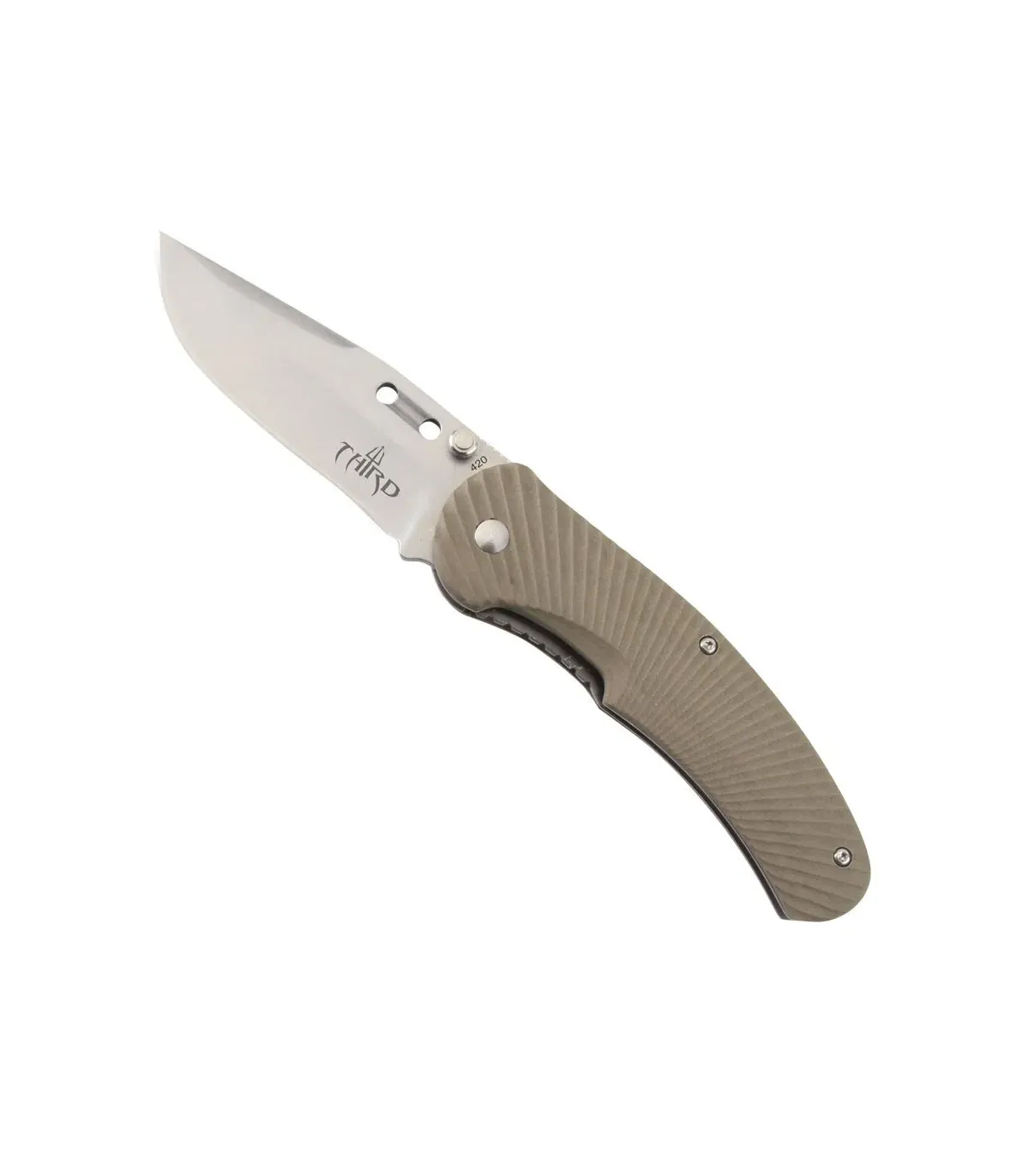 Das Messer der Marke Third mit Stein-Finish-Klinge und G10-Griff in Camel ist ein zuverlässiges und elegantes Werkzeug, das Sie auf all Ihren Abenteuern begleitet. Warten Sie nicht länger, um dieses essentielle Stück in Ihrer Sammlung zu haben! Kaufen Sie es noch heute und entdecken Sie seine Vielseitigkeit und Stil bei Ihren täglichen Aktivitäten.