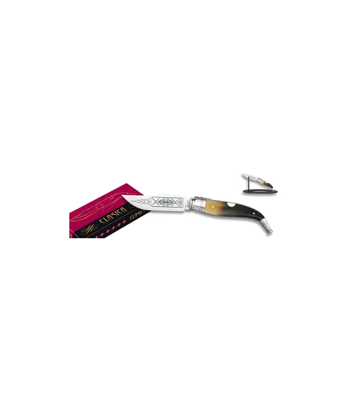 Das Deluxe Taschenmesser von Martinez-Albainox ist weit mehr als nur ein einfaches Werkzeug; es ist ein funktionales Kunstwerk, das deine Wertschätzung für Schönheit und Authentizität widerspiegelt. Egal, ob du es bei besonderen Gelegenheiten verwendest oder es in deinem Alltag bei dir trägst, dieses Messer verleiht jedem Moment einen Hauch von klassischer Eleganz. Mit seiner verzierten Klinge, dem Griff aus Stierhorn und seiner überlegenen Qualität ist dieses Messer ein Zeugnis deines raffinierten Stils und deiner Wertschätzung des Außergewöhnlichen. Füge das Deluxe Taschenmesser deiner Sammlung hinzu und beeindrucke mit deiner zeitlosen Eleganz bei jeder Gelegenheit!