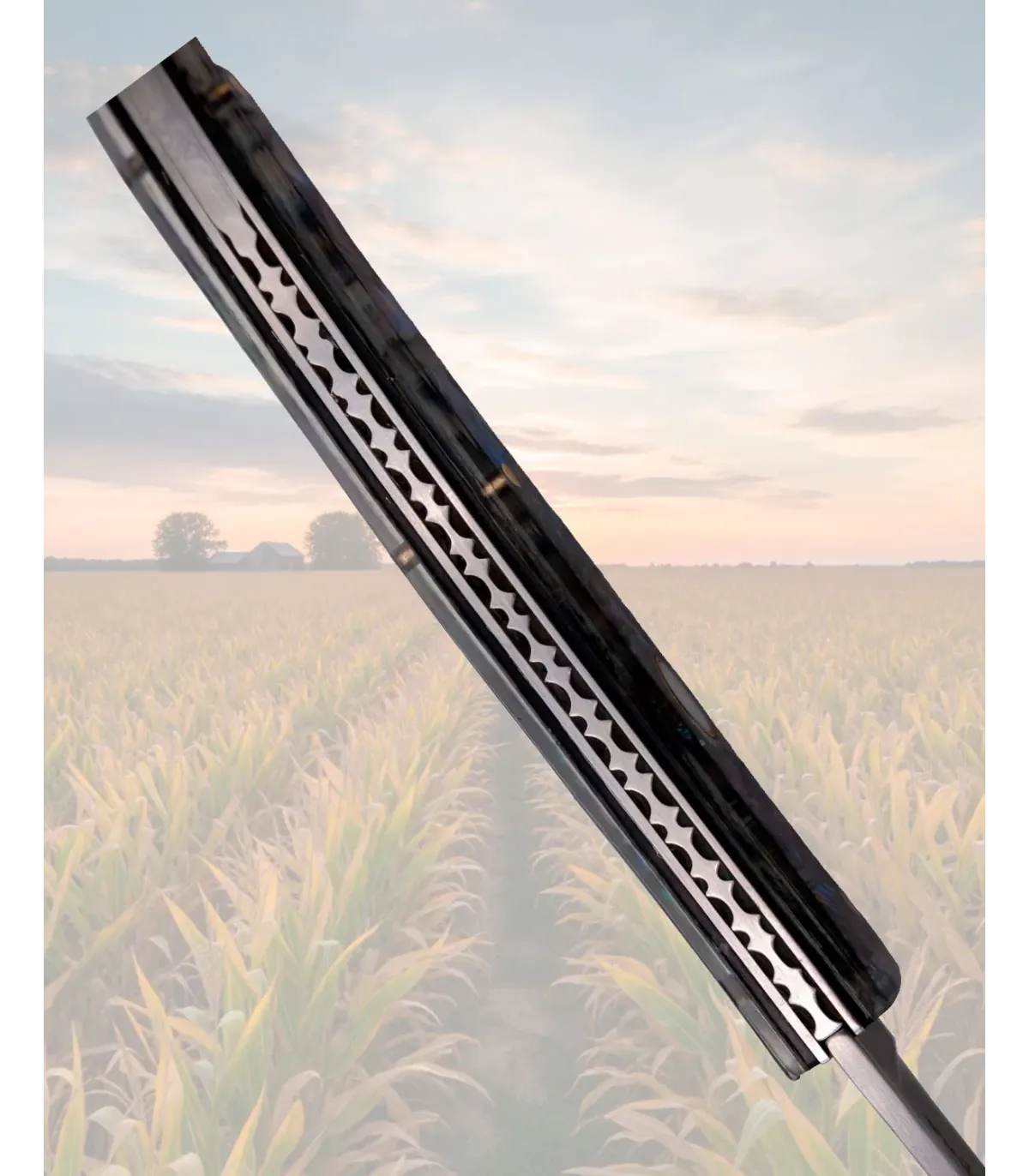 Der Griff in schillernden Abalone- und Acrylfarben verleiht ihm einen einzigartigen Charakter, als würde jede Grifffläche ihre eigene Geschichte in Blau und Grün erzählen. Die ergonomische Form mit einer sanften Kurve und zwei gut integrierten Nieten sorgt für einen komfortablen und stabilen Halt, ideal für längere Manöver ohne Ermüdung.