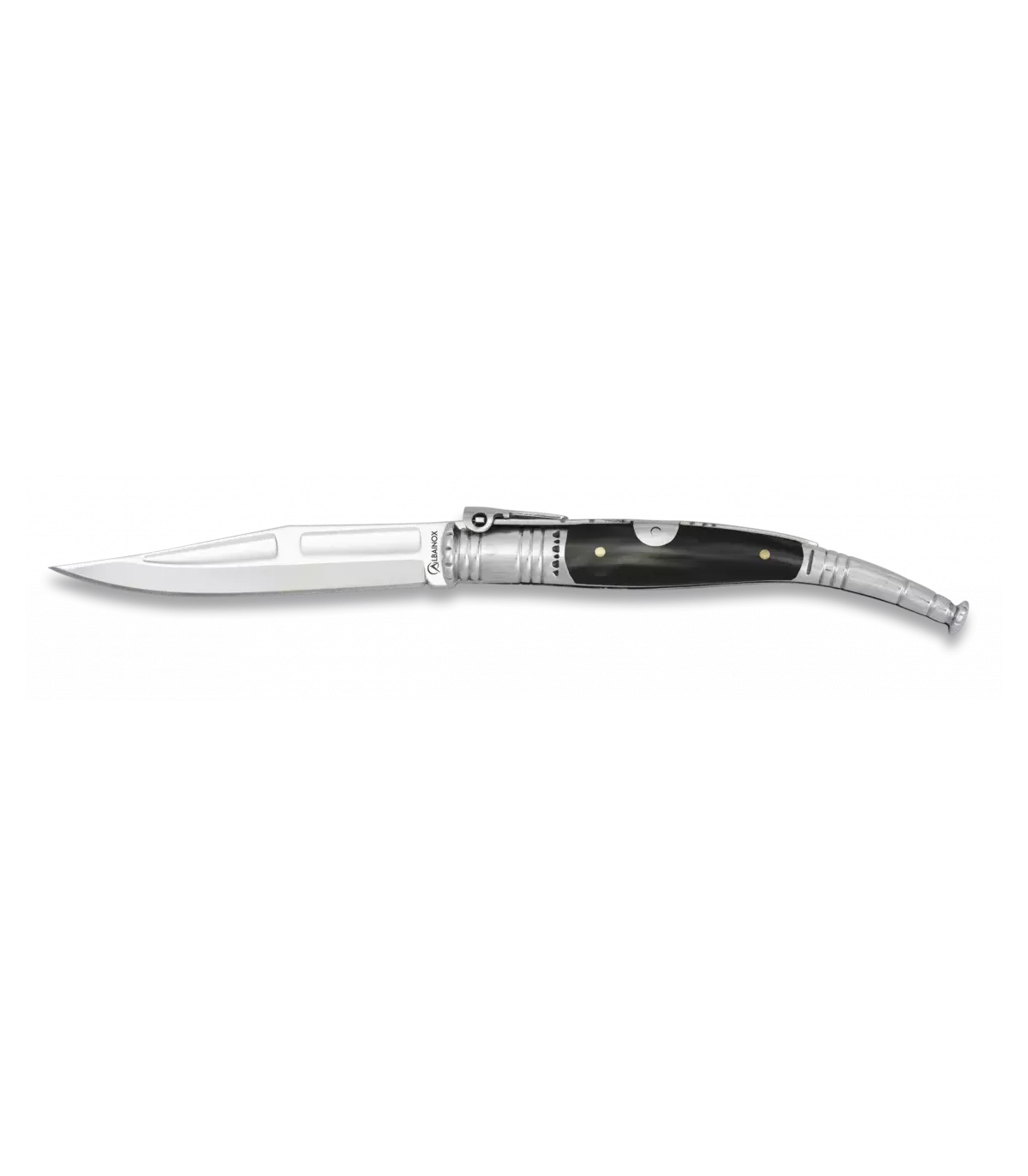 Entdecken Sie die Authentizität und Qualität des Carraca-Messers, hergestellt von Martínez Albainox. Dieses außergewöhnliche Messer verfügt über eine Klinge aus rostfreiem Stahl mit 8,7 cm Länge und einen Griff aus echtem Stierhorn, was Ihnen eine einzigartige Kombination aus Stil und Leistung bietet.