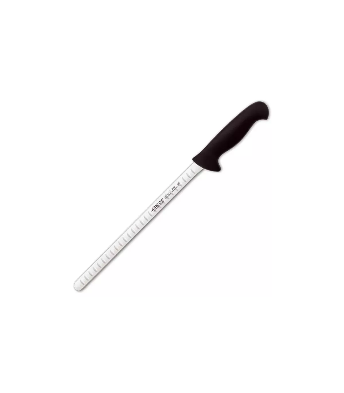 Lachsmesser, flexibel und mit Alveolen, aus exklusivem Hochleistungs- und langlebigem Edelstahl NITRUM® und Griff aus Polypropylen. Entworfen und hergestellt von der renommierten Marke ARCOS für Profis, die eine längere Nutzung benötigen.
