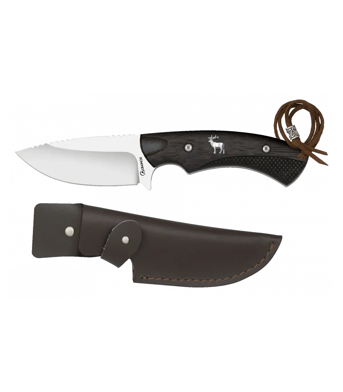 Entdecken Sie die Eleganz und Präzision des Hirschjagdmessers mit Lederscheide. Hergestellt von der renommierten Marke Albainox trägt dieses Messer den Namen 'Hirsch' und ist für die Herausforderungen der Jagd und Outdoor-Aktivitäten konzipiert. Mit einer Klingenlänge von 9,50 cm ist dieses Messer ideal für Jagd- und Outdoor-Aufgaben. Die Klinge besteht aus 3CR13MOV-Stahl, der eine hervorragende Widerstandsfähigkeit und Langlebigkeit bietet. Das satinierte Finish der Klinge verleiht ihm ein elegantes und widerstandsfähiges Aussehen.