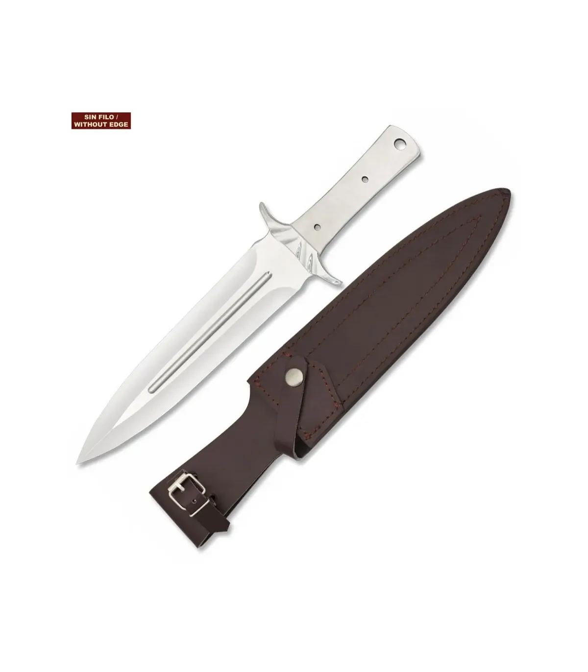 Der Stahlring sorgt für zusätzliche Stabilität und Kontrolle beim Messer, sodass Sie präzise Bewegungen mit Vertrauen ausführen können. Außerdem wird das Messer mit einem Lederholster geliefert, das es nicht nur während des Transports schützt, sondern auch einen Hauch von Eleganz verleiht.