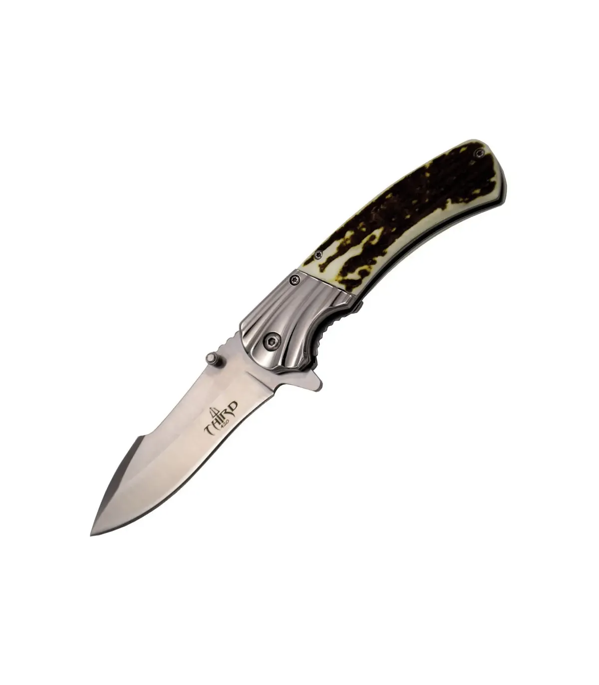 Erleben Sie die Authentizität des Third-Messers mit Griff aus Imitation Geweih und Klinge aus Stahl 420: