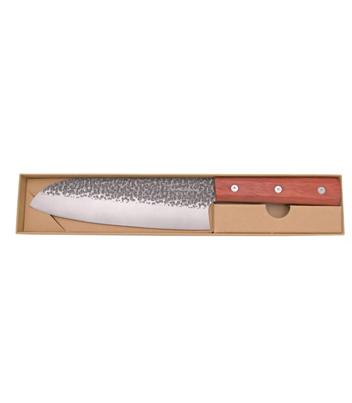 Das Tramuntana Küchenmesser Modell Santoku wird in einer eleganten Schachtel präsentiert, die perfekt zum Verschenken geeignet ist oder um Ihr Werkzeug beim Nichtgebrauch geschützt aufzubewahren. Diese Schachtel spiegelt die Qualität und Sorgfalt wider, die die Produkte von Tramuntana auszeichnen, und sorgt dafür, dass jedes Detail auf das Beste ausgelegt ist.