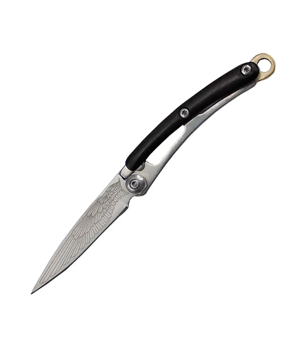 Der Druckknopfverschluss sorgt für einen sanften und sicheren Betrieb, während der Ebenholzgriff mit einer Länge von 6,5 cm einen bequemen und ergonomischen Griff bietet. Die Stahlklinge 420, mit einer Länge von 5 cm und einer Dicke von 2 mm, bietet eine hervorragende Schneidleistung für eine Vielzahl von Aufgaben.