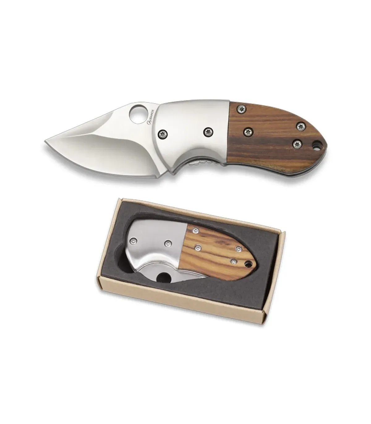 Wir präsentieren das Taschenmesser Albainox mit Holzgriff, ein elegantes Werkzeug, das Funktionalität und Stil in einem außergewöhnlichen Design vereint.