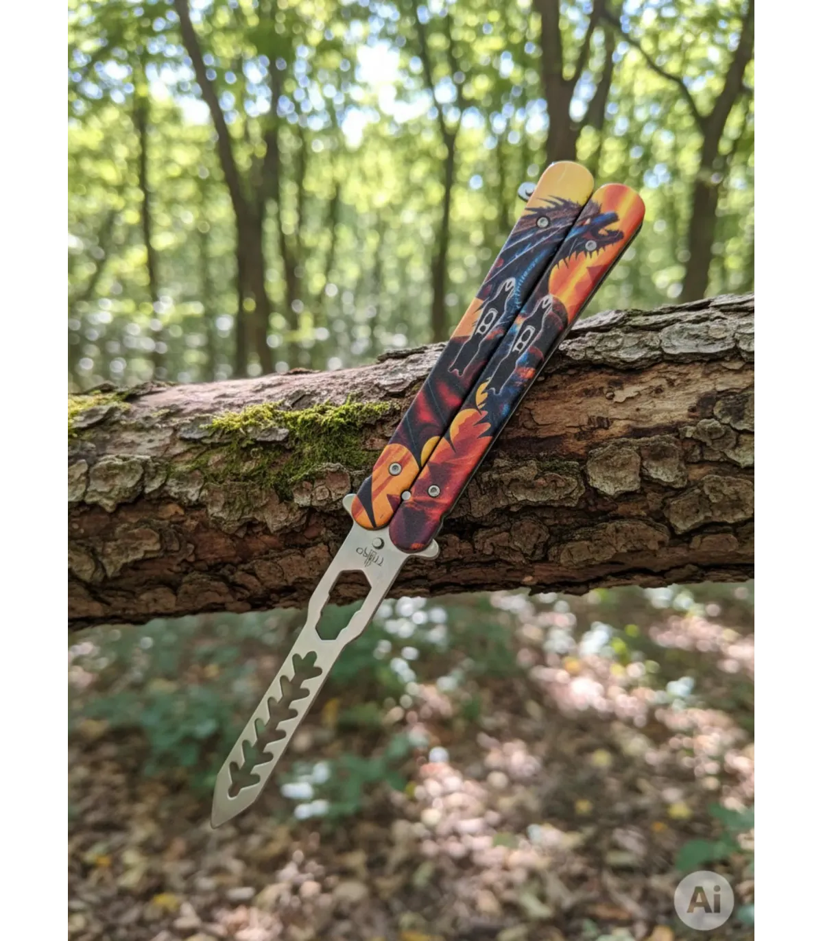Suchen Sie nach einem Stück, das Funktionalität und Stil bei jedem Gebrauch vereint? Dieses bezaubernde Fächer-Messer Third Mango Drachenfeuer-Design ist perfekt für diejenigen, die Praktikabilität schätzen, ohne auf Ästhetik zu verzichten. Mit einer Länge von 21,7 cm garantiert die 9,4 cm lange Klinge aus 420er Stahl mit Spiegel-Finish Widerstandskraft und einen glänzenden Akzent, der beeindruckt – ideal für vielfältige Aufgaben oder zur Präsentation in Ihrer Sammlung.