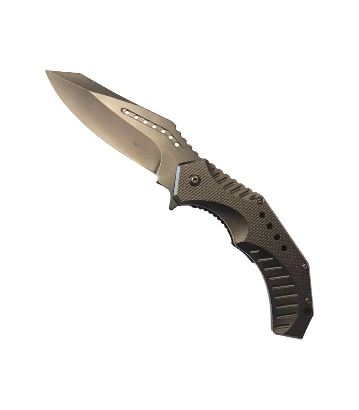 Bereite dich darauf vor, jeder taktischen Situation mit unserem Taktischen Messer mit schwarzer Klinge SCK zu begegnen! Mit einer Länge von 21 cm ist dieses Klappmesser ein zuverlässiges und vielseitiges Werkzeug für deine Bedürfnisse im Einsatz.