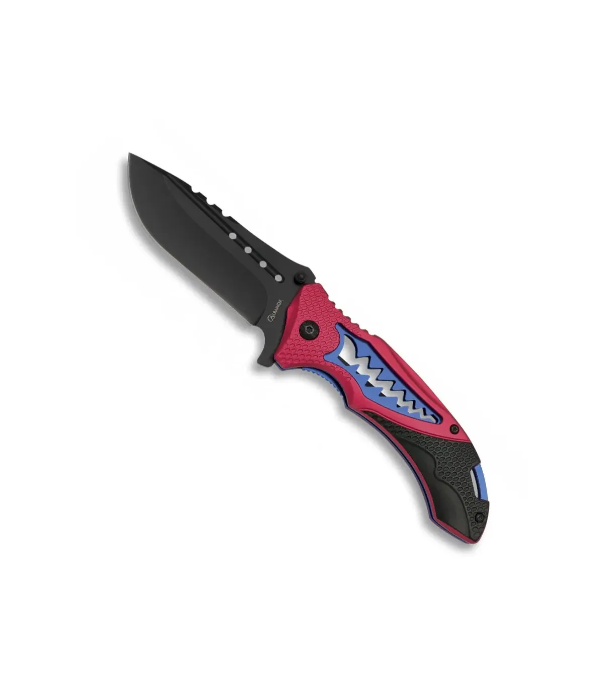 Das Albainox Shark Messer ist ein spanisch entworfenes Taschenmesser, hergestellt aus hochwertigen Materialien. Die 9 cm lange Klinge aus rostfreiem Stahl ist langlebig und scharf, und der Aluminiumgriff sorgt für einen bequemen und sicheren Halt. Das Shark-Messer ist perfekt für eine Vielzahl von Aufgaben, einschließlich zum Öffnen von Kartons, Schneiden von Seilen und Heimwerkerarbeiten.