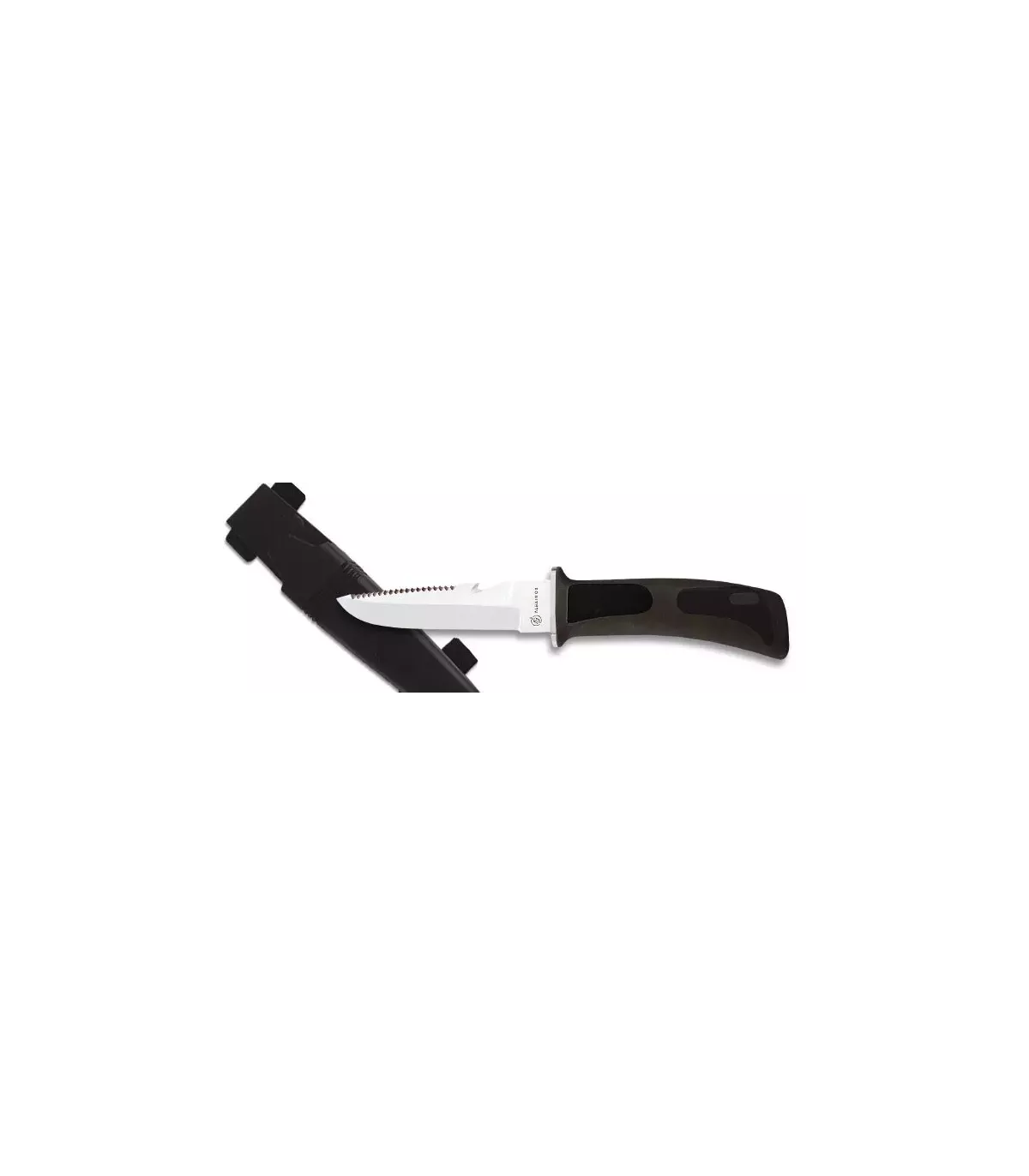 Suchen Sie nach einem langlebigen und hochwertigen Tauchermesser? Das schwarze Tauchermesser ist die perfekte Wahl für Sie. Mit einer 11,5 cm langen Klinge aus Edelstahl und einem starren PVC-Holster ist dieses Messer ideal für den professionellen Einsatz und wird von der renommierten Marke Martínez Albainox hergestellt, wobei hochwertige Materialien verwendet werden.