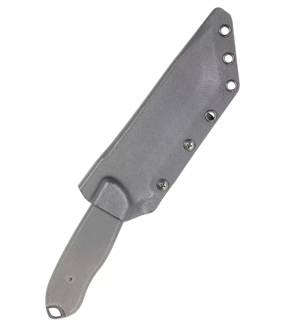 - Ergonomischer und anpassbarer Griff: Der Griff ist mit ergonomischen Micarta-Schalen ausgestattet, die nicht nur einen bequemen und sicheren Griff bieten, sondern auch vollständig abnehmbar sind, dank der Inbusschlüssel. Diese Eigenschaft ermöglicht es Ihnen, das Messer nach Ihren Vorlieben und spezifischen Bedürfnissen anzupassen.