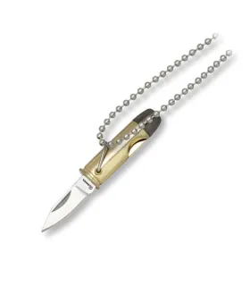 Navaja llavero bala colgante, hoja 3 cm. La hoja es forjada en acero 3Cr13MOV. El tamaño total de la navaja abierta es de 7,2 cm. El tipo de bloque es de pistón.