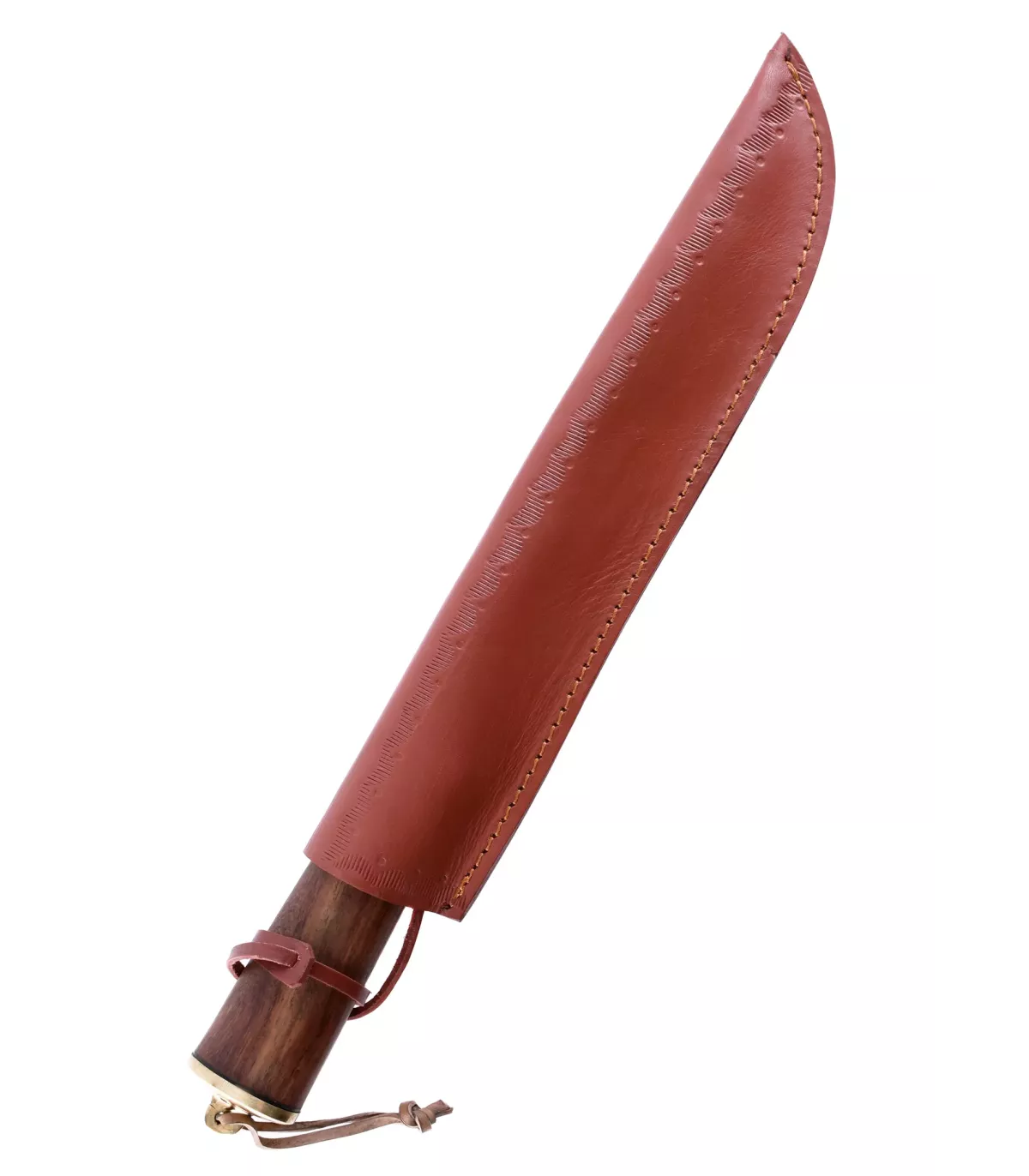 Are you looking for a sturdy and characterful companion for your outdoor adventures? This medieval long knife with a leather sheath is much more than a tool; it is a piece that combines functionality and style in every detail. Its design inspired by history transports you to eras when quality and craftsmanship were the norm, offering a product that stands out for its rustic and durable character. Includes a leather cord and a brown leather sheath with a belt loop.