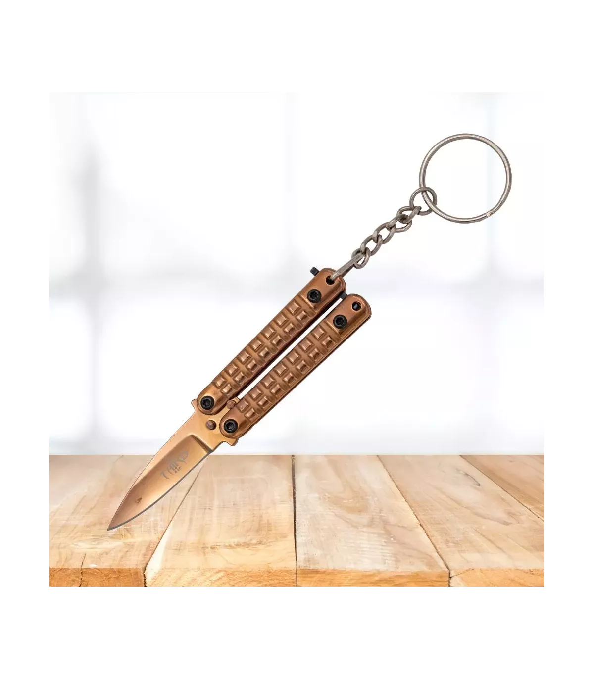 Are you looking for a practical tool that combines style and functionality in your daily life? This butterfly keychain knife, in a dazzling 'bright rose' titanium finish, is just what you need to carry with you without sacrificing elegance. Its compact and striking design fits perfectly with your keys, allowing you to open whatever you need with confidence and speed.
