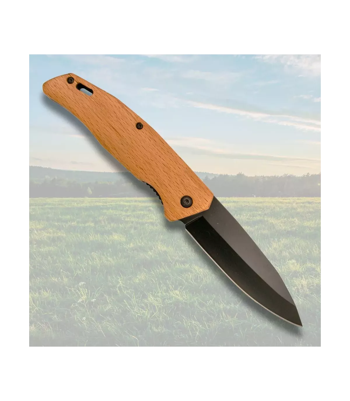 Are you looking for a versatile and reliable tool for your outdoor adventures or everyday tasks? This Third field knife with a maple wood handle and black blade is designed to offer you precision and durability in every cut. Its 420 steel blade, with a matte black finish, not only guarantees resistance against the most demanding conditions but also reduces reflections for discreet and safe use. With an 8.8 cm active edge and a thickness of 2.9 mm, it provides precise cuts in various materials, while its compact size and lightweight of only 97 grams make it easy to carry and handle daily.