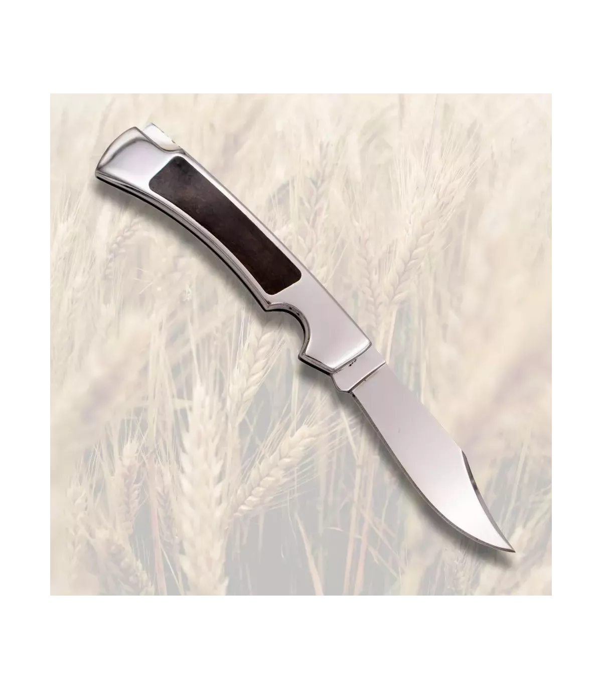Imagine having in your hands a tool that is not only functional but also a true work of art. The pocket knife we present is not just a utensil; it is a statement of elegance and artisanal skill. With a mirror-polished finish, its handle combines stainless steel with an elegant ebony wood insert, which not only enhances its beauty but also provides a perfect and comfortable grip with each use.