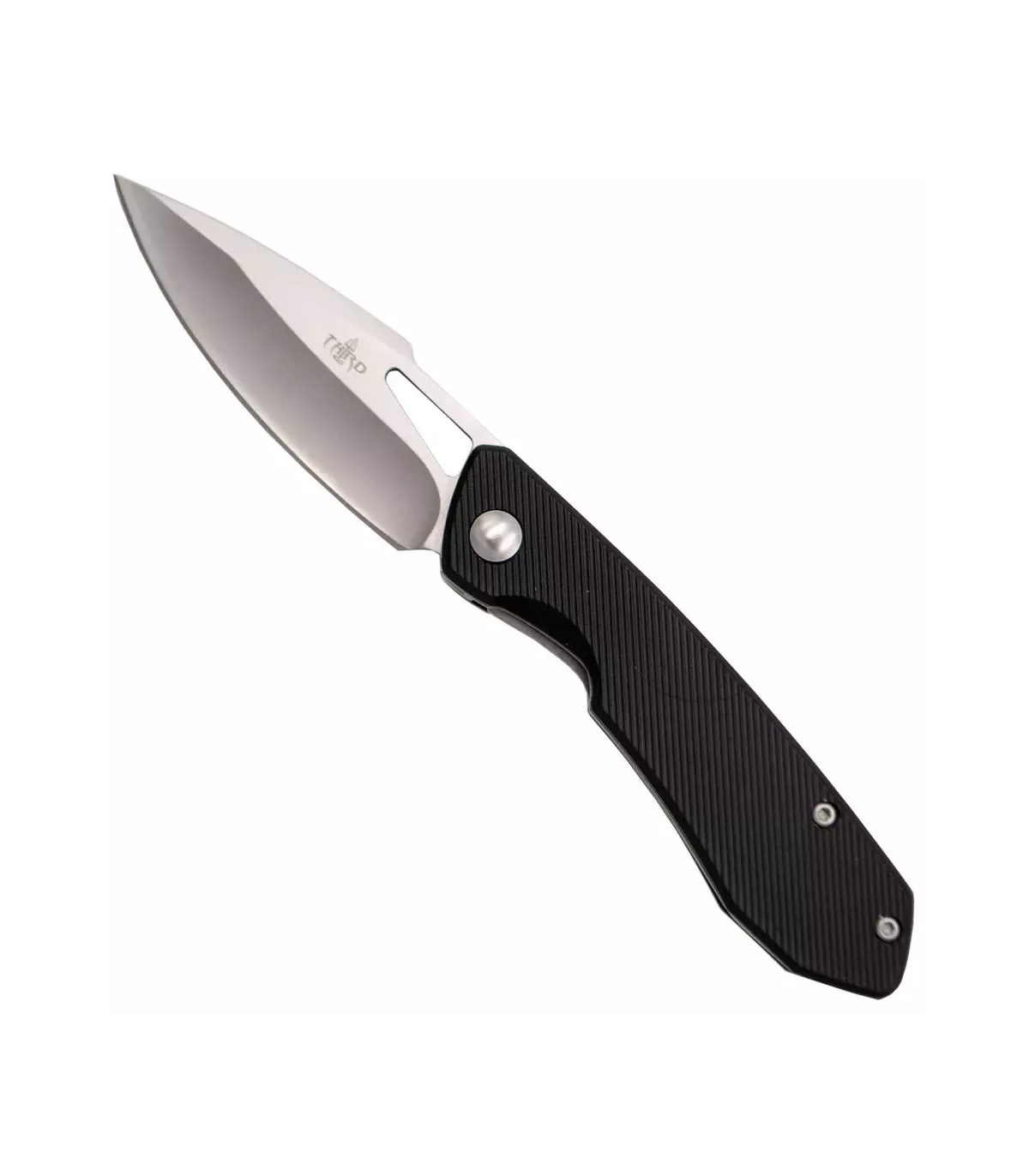 The handle, made of black aluminum with a special texture, ensures a firm and comfortable grip, even under demanding conditions. Its sober and elegant design is complemented by a satin-finished 7 cm blade, which provides precise and reliable cuts. This blade is not only effective for daily tasks but also stands out for its durability, remaining sharp and ready for any challenge.